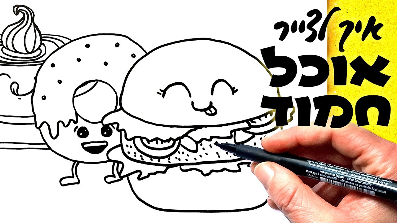 איך לצייר דברים חמודים, קלים וטעימים 😋 איך לצייר אוכל חמוד: המבורגר, דונאט וכוס קפה | 2020