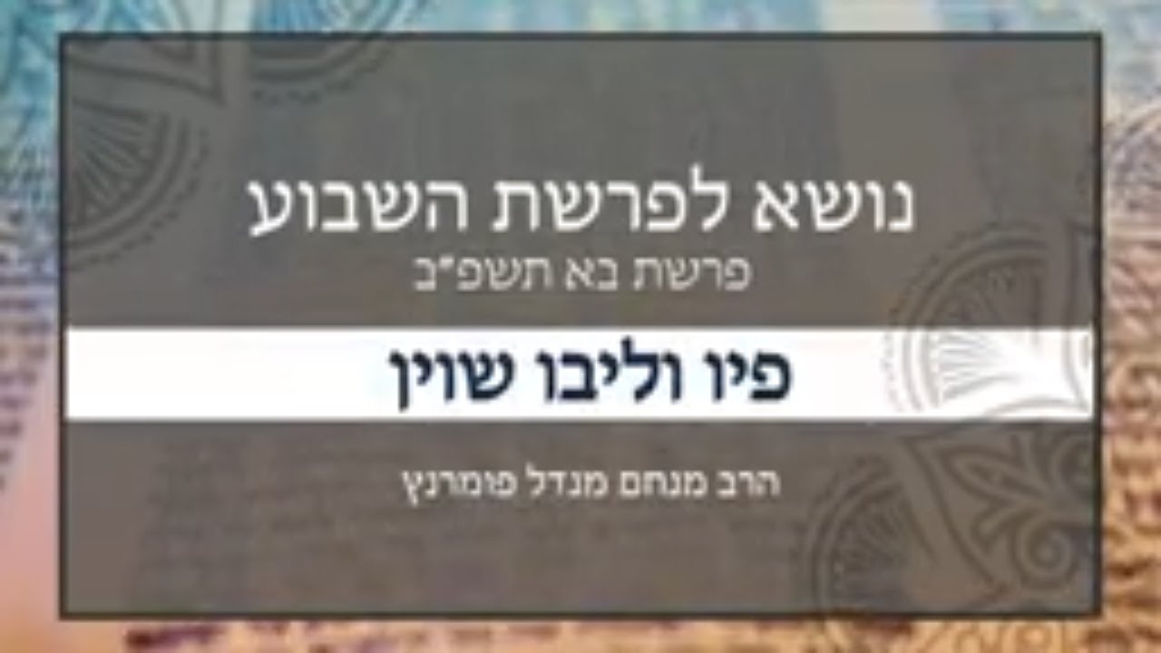 • פיו ולבו שוין • הרב מנחם מנדל פומרנץ נושא לפרשה פרשת בא תשפ"ב