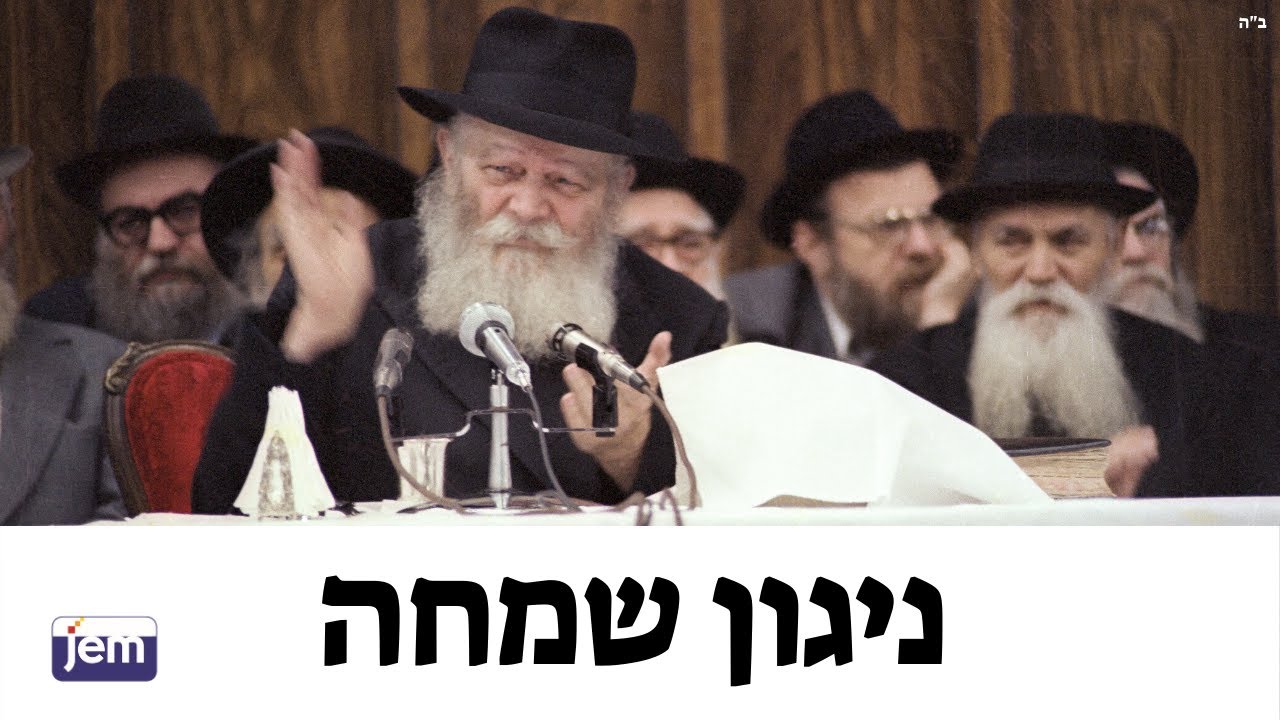 שירת ניגון שמחה בהתוועדות פורים תשמ"ב (9 במרץ 1982) אצל הרבי. מתוך דיסק 72, תוכנית 285. http://jem.co.il