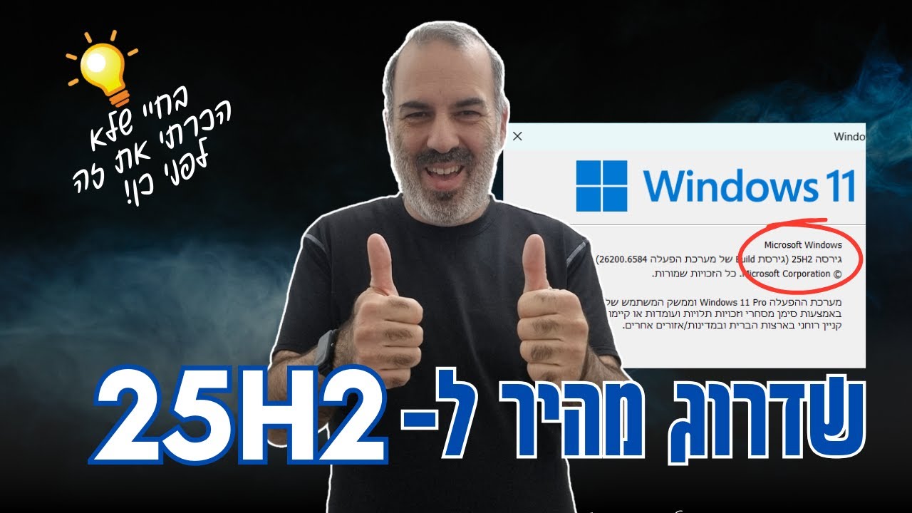 גרסת 25H2 של ווינדוס 11 עדיין לא יצאה, אבל מסתבר שיש כבר אפשרות להוריד את הקבצים להתקנה מהשרתים של מיקרוסופט. רק שבמקום להוריד קובץ ISO ענק, נוכל להוריד חבילת הפעלה (Enablement Package) קטנטנה ולשדרג ל-25H2 בקלי קלות. עם זאת, יש לציין שלא מדובר בהצהרה רשמית של מיקרוסופט, כך שכמו תמיד - מומלץ לגבות את המחשב לפני השדרוג. בכל אופן, ניתן להסיר את העדכון ולחזור חזרה ל-24H2. תעשו כמובן את הבדיקות שלכם לפני ההתקנה. אני עצמי התקנתי כרגע (בסרטון) על מכונה וירטואלית בלבד. לפוסט באתר שלי עם כל הלינקים: https://mytechdesk.co.il/install-windows-11-25h2-early/ ---- 🔻 איפה אפשר למצוא אותי🔻 דיסקורד: https://discord.gg/AjMTSdvfQd קבוצת דיון בטלגרם: https://t.me/MyTechDeskGroup קבוצת פייסבוק: https://www.facebook.com/groups/mytechdesk וואטסאפ: https://whatsapp.com/channel/0029VaHGXNT7T8bP9V49L51Z 🔻דרכים לתמיכה בערוץ🔻 תרומה דרך פייפאל: https://bit.ly/3SCaPYa קנו לי כוס קפה (או כמה כוסות): https://bit.ly/3edwdEb דרך נוספת לתרום: https://ko-fi.com/mytechdesk תרומה דרך סטרים אלמנטס: https://bit.ly/3Cd88Wb 🔻עמלה קטנה לערוץ אם תקנו דרך הלינקים האלה🔻 KSP: https://ksp.co.il/item/F9819AX&homepage Amazon: https://amzn.to/2HNmeoA Ali Express: https://bit.ly/3jXLTJq Banggood: https://bit.ly/3jRjmFr הבהרה: כל המוצג בסרטון הינו לטובת הדרכה בלבד. אינני נושא באחריות לכל מקרה של תקלה, וירוס, באג, שבר או כל בעיה אחרת שתיגרם בעקבות נסיון לחקות את פעולות המציג. בנוסף, התוכנות המוצגות בערוץ אינן שייכות למציג ואין לו חלק בכתיבת הקוד שלהן ועל כן אין לו אחריות על כל תקלה שתיגרם בעקבות השימוש בהן. על כן, חלה חובה על המשתמש לבדוק בעצמו את כל הפעולות לפני עשייתן ואין לבוא למציג בטענה כלשהי מעצם ביצוע פעולה בעקבות הסרטון. #MyTechDESK