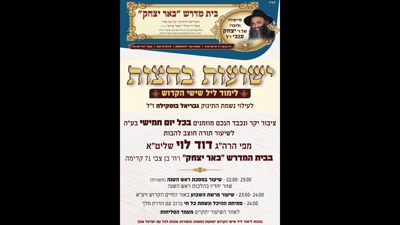 https://www.youtube.com/@beer-itzhak "חדש!!! עכשיו גם אפליקציה במכשירי אנדורייד " באר יצחק עקבו אחרינו ושתפו חברים לצפייה במגוון שיעורים מפי מיטב הרבנים שיעורים מתקיים בכל יום מהשעה 19:00-20:00 & 20:15-21:45 בשעה 00:30 סליחות ברוב עם בבית המדרש באר יצחק - קדימה רח' בן צבי 71 https://beer-itzhak.co.il/