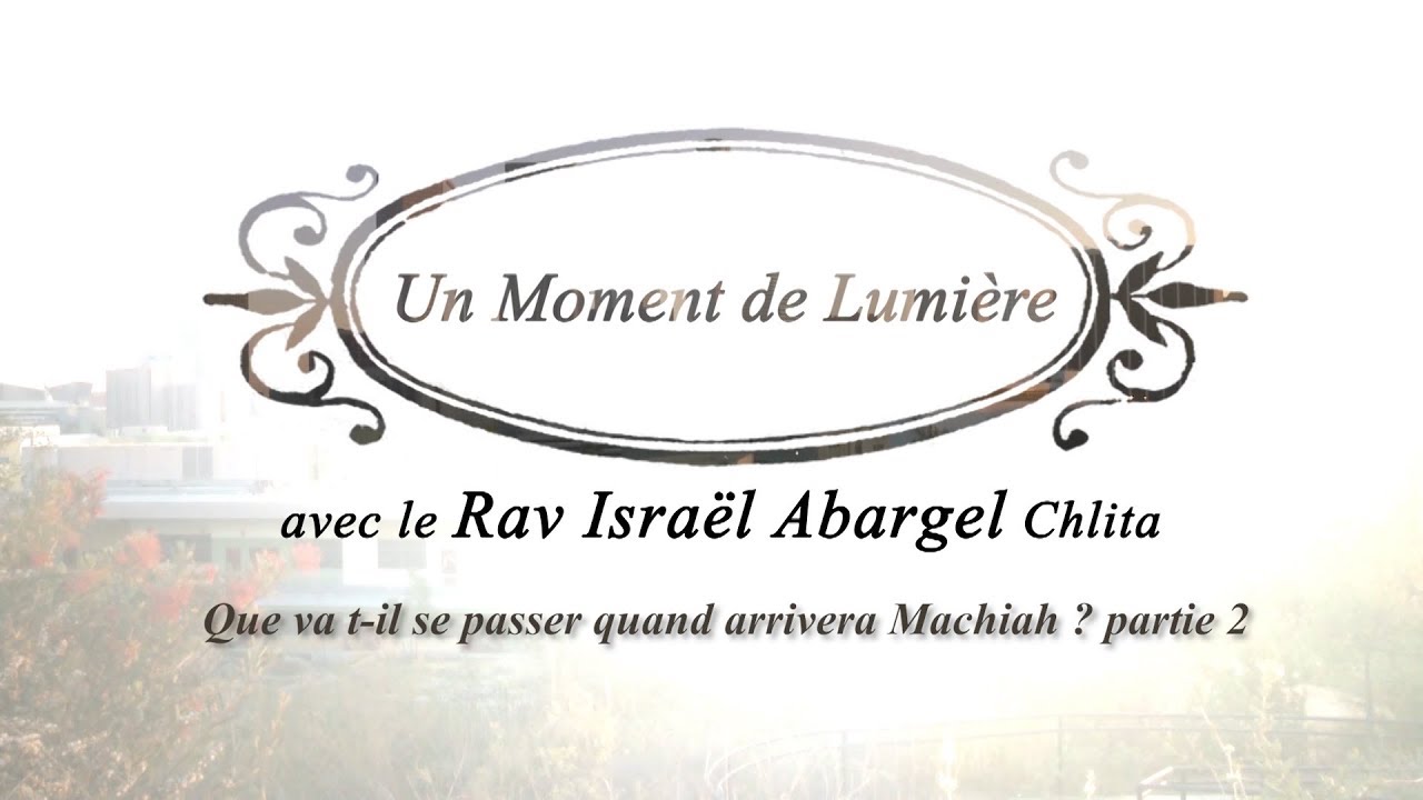 Un Moment de Lumière - Rav Israël Abargel Chlita - Que va t il se passer quand arrivera Machiah? partie 2 Participez à la diffusion de la Torah! Pour dédicacer et vous procurer les livres du Rav composez le: +972-8-97-66-979 , rebbiisrael@hameirl.com Pour contacter l'association "Haméir Laarets" dirigée par le Rav Israël Abargel Chlita: +972-8-97-66-979 , rebbiisrael@hameirl.com