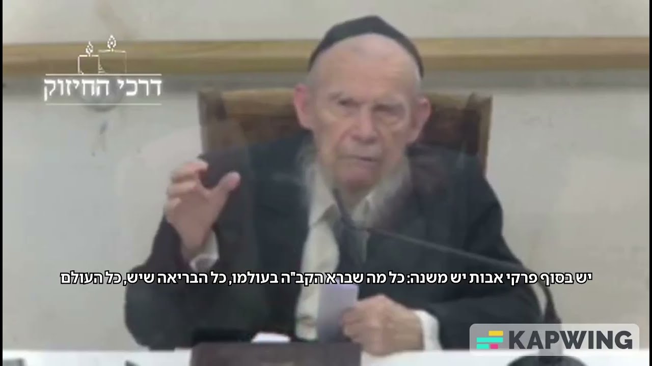 יש בסוף פרקי אבות יש משנה: כל מה שברא הקב"ה בעולמו, כל הבריאה שיש, כל העולם, השמיים, הכל, שמים וארץ, כוכבים, הכל, כל מה שקורה, זה לא בראו אלא לכבודו, המטרה זה כבוד שמים, שיהיה כבוד שמים, לכן קיים העולם, יש תורה מן השמים, ויש אלו שמקיימים את התורה, בזה יש כבוד שמים, זה המטרה של הבריאה, בריאת העולם לכבודי בראתיו יצרתיו עשיתיו, בריאה יצירה עשיה, זה הכל המטרה היא כבוד שמים. יש רבינו יונה בשערי תשובה, (שער השלישי אות קס"ח), יש גמרא הפורשים מדרכי ציבור, הפורשים מדרכי ציבור אין לו חלק לעוה"ב, אין להם עולם הבא, יש להם גיהנום, אין עולם עולם הבא, הנפש קיימת, יש משהו, אם לא עולם הבא, אז מה ההיפך? גיהנום! והוא אומר ככה, מה זה פורש מדרכי ציבור, זה גמרא הפורש מדרכי ציבור. אם יש ציבור שעוסקים במצוה, הציבור עוסקים במצוה, מקדשי השם, מצוה זה לדעת מה המצוה ומי המצוה, בזה יש כבוד שמים, זה כבוד השם, ומי שלא משתתף במצוה שכולם עוסקים, זאת אומרת הוא לא אכפת לו, הוא מזלזל, לא רוצה לעסוק בכבוד שמים, הוא מזלזל בגלוי בכבוד שמים, הוא לא משתתף איתם, על זה נאמר הפורש מדרכי ציבור אין לו חלק לעוה"ב, ומה יש לו?, לא עולם הבא, אבל הנפש היא נצחית, גיהנם, לכן אז לקדש שם שמים זה זכויות עצומות לקדש שם שמיים. קרדיט תיעוד: דרכי החיזוק. *נהנתם מהסרטון? תנו לייק והרשמו כמנוי ותתנו לנו את הכוח להמשיך................* צופים יקרים: הקליקו "הירשם כמנוי" ואחר כך לחצו על הפעמון, ואז תהיו המעודכנים הראשונים בכל סרטון חדש שעולה ליוטיוב ! נו, לא כדאי להירשם ? *יש לכם תיעוד וידאו מעולם התורה לפרסום? שלחו אלינו מייל 6701822@gmail.com* *המערכת מכבדת זכויות יוצרים* *התיעודים המתפרסמים בערוץ זה הם ע"פ תורתינו הקדושה, ולהבדיל ע"פ חוקותיהם, חוק זכויות יוצרים תשס"ח 2007 למנינם, סעיף 27א, במידה ובעל המוצר חפץ שנפסיק להשתמש במוצר, או שנייחס הסרטון אליו שלחו לנו מייל לכתובת: 6701822@GMAIL.COM והעניין יטופל.* ********************************************** שימו לב על כל פרסום סרטון שהתפרסם בערוץ זה חובה לציין קרדיט ל'ערוץ בקודש פנימה'.