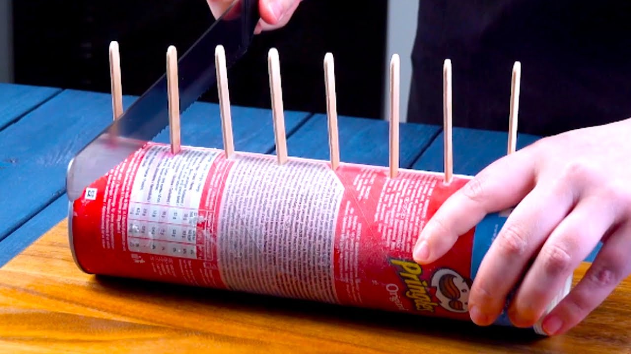 Stick 8 Popsicle Sticks Into A Pringles Can & Cut It Into Slices | Homemade Ice Cream Bars