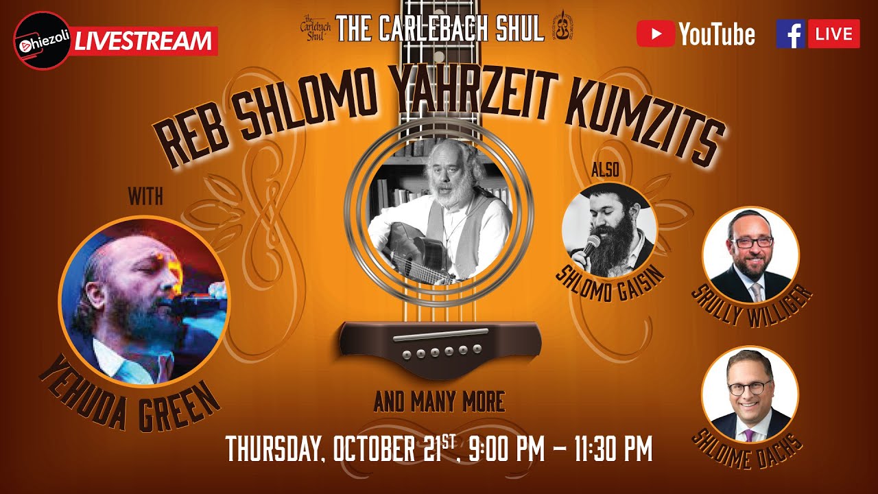 Livestream with Yehuda Green and special guests and friends, including Shlomo Gaisin from Zusha, Srully Williger, Shloime Dachs, and many others. Join this kumzits experience for an unforgettable evening of Reb Shlomo's niggunim. More information available at https://www.thecarlebachshul.org/event/carlebach-yahrzeit-kumzits/ This event has been made possible by a contribution from Joy Fishman in memory of her son Jonathan Stampler. To make a donation to The Carlebach Shul in honor of Reb Shlomo's yahrzeit, go to https://www.thecarlebachshul.org/product/donate-in-memory-of-reb-shlomo/ #CarlebachShul #ShlomoCarlebach #LiveStream