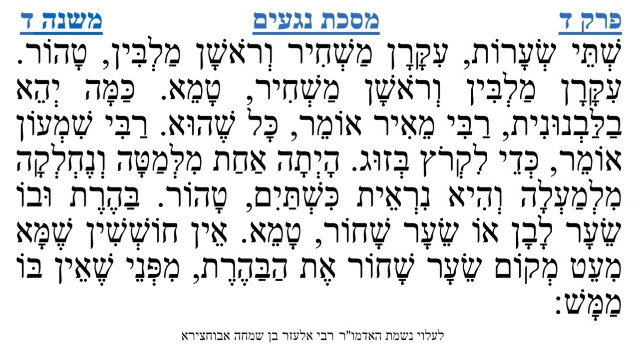צפייה ישירה ב-YouTubeמסכת נגעים פרק ד משנה ד