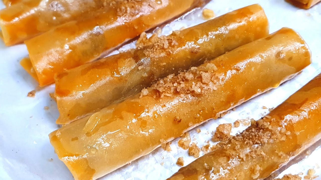 בקלי קלות- מאפה פילו סיגרים עם מלית אגוזים טעים וקל הכנה @bkalykalut7 אתר לרכישת יוצרים לבית ולמטבח לחצו על הקישור- http://s.click.aliexpress.com/e/cUi5lcbI מתכון רשום ומסודר בבלוג שלי https://kalyklot.blogspot.com/2022/09/blog-post_12.html למלית לשים בקערה 100 גרם אגוזים קצוצים 4 כפיות סוכר חום דמררה או סוכר לבן חצי כפית קינמון 1 כפית תמצית וניל או סוכר וניל לערבב אופן ההכנה לשים על שולחן העבודה נייר לאפייה להניח עליו דף בצק פילו להבריש עם מעט שמן קנולה להניח עליו שוב דף בצק פילו להבריש במעט שמן קנולה לחתוך למלבנים בערך בגודל כ-12 ס"מ ×10 ס"מ ניתן לחלק את הבצק ל-8 ריבועים לשים בקצה הבצק 1 כפית מלוי אגוזים להניח 4 צימוקים לקפל שוליים ולגלגל לסיגרים להבריש מעל מעט שמן קנולה לאפות בתנור חם 170 מעלות כ-25 מעלות עד הזהבה וקריספיות להכין סירופ סוכר לשים בסיר 1 כוס פלסטיק סוכר לבן 80 גרם 1 כוס פלסטיק מי ברז 160 גרם 1 כפית דבש או סילאן או מייפל 1 כפית תמצית וניל להרתיח כשתי דקות לטבול את הסיגרים החמים בסירופ שהתקרר כמה שניות להוציא לצלחת לקשט עם אגוזי מלך קצוצים