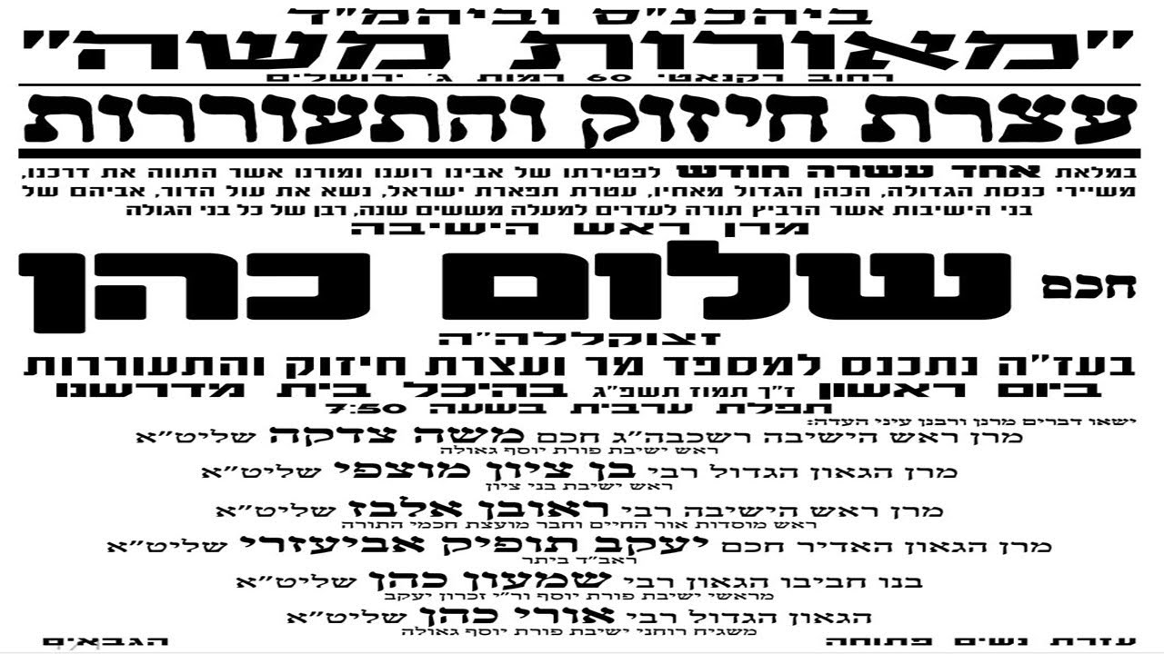 הספד מר למרן ר"י חכם שלום כהן זצ"ל במלאות אחד עשר חודש לפטירה תמוז תשפ"ג