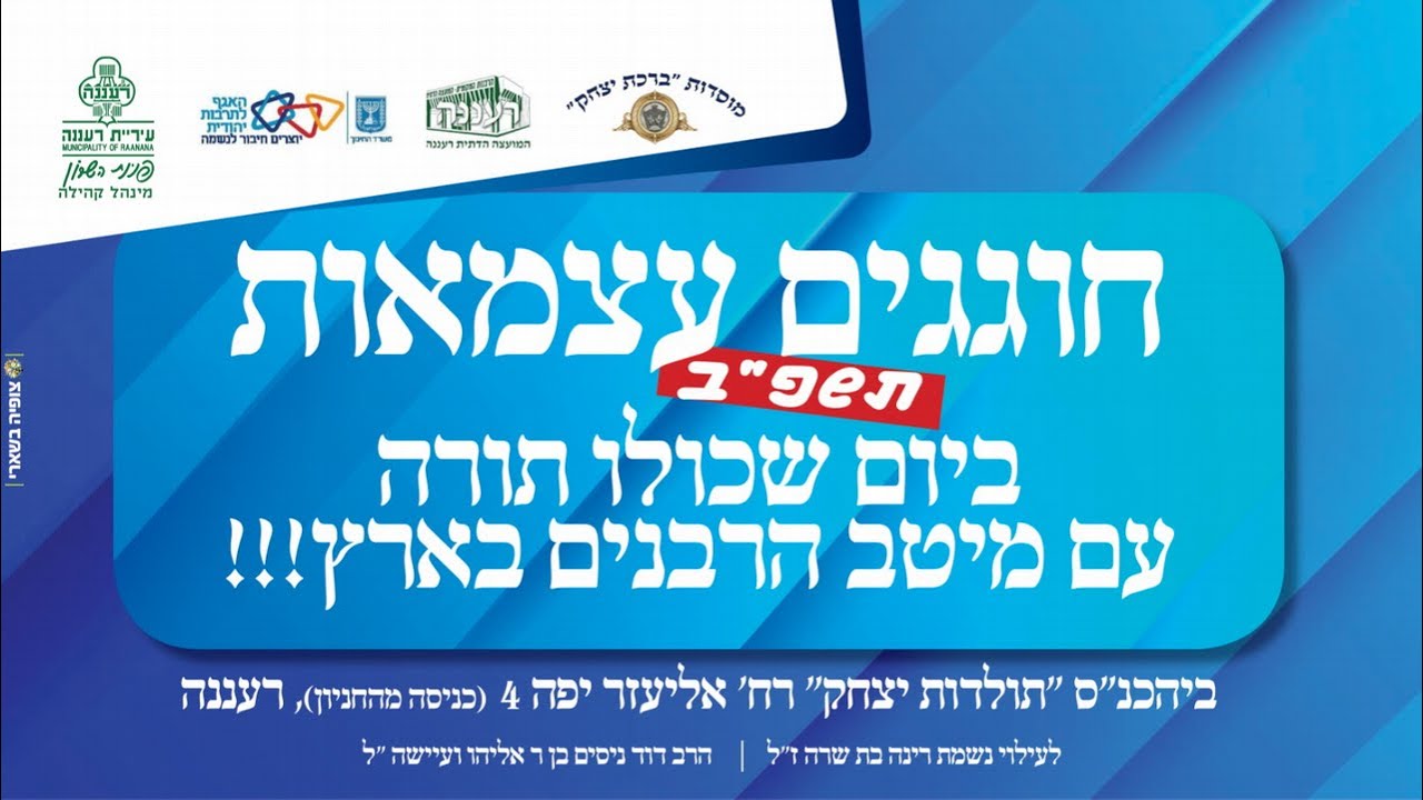 צפייה ישירה ב-YouTubeיום שכולו תורה ברעננה תשפ"ב