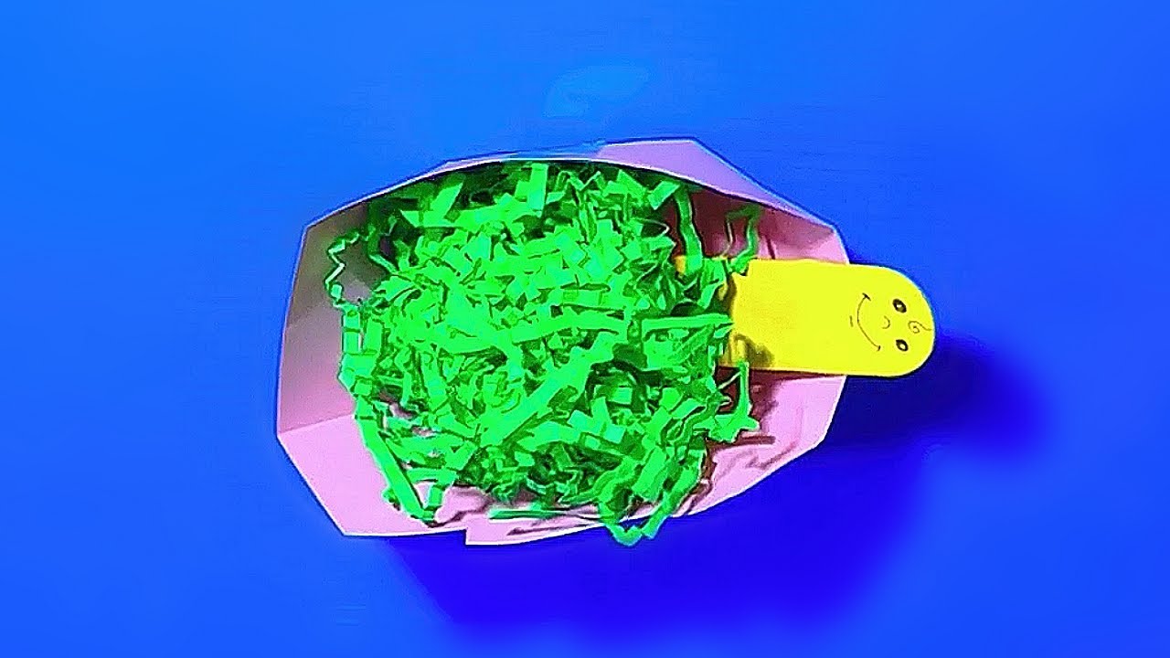 הכנת יצירה של משה בתיבה מנייר. מכינים תיבה מאוריגמי, מוסיפים שמיכה מקש נייר ירוק וסמיילי על מקל ארטיק. יצירה לכבוד חג פסח. #יצירה#נייר#משה#פסח