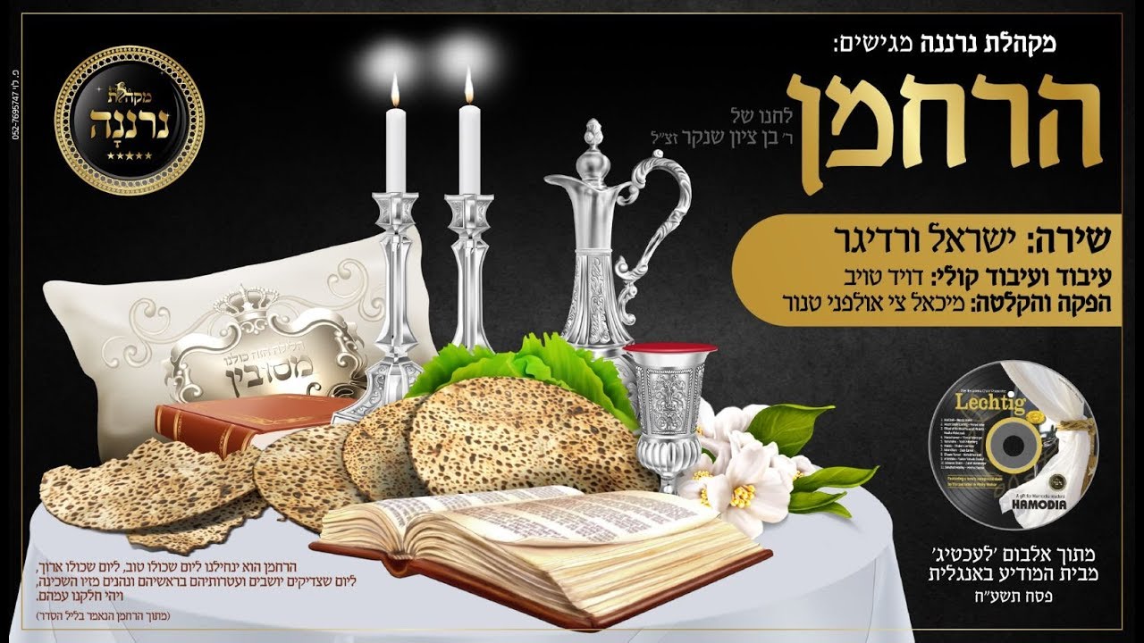 בעוד ימים ספורים נסב לשולחן הסדר הקדוש ובברכת המזון נאמר את הרחמן המיוחד "הרחמן הוא ינחילנו ליום שכולו טוב, ליום שכולו ארוך, ליום שצדיקים יושבים ועטרותיהם בראשיהם, ונהנים מזיו השכינה ויהי חלקנו עמהם " על תפילה ובקשה זו הלחין היוצר והמלחין האגדי ר' בן ציון שנקר זצ"ל לחן שמימי במיוחד, לחן המבטא היטב את הכמיהה והתשוקה של כל יהודי לזכות להגיע אל היום הגדול לעתיד לבא ולגאולה השלמה, מקהלת נרננה מגישה בפניכם ביצוע מלא רגש עם הסולן הבעל המנגן ישראל ורדיגר מארה"ב במתיקות מיוחדת כשעל העיבוד הנהדר אחראי המעבד המוכשר דויד טויב כשברקע כמובן קולות המקהלה מקהלת נרננה . מקהלה : "נרננה" סולן: ישראל ורדיגר עיבוד ועיבוד קולי : דויד טויב טכנאי : דודי רוט הפקה ואולפן : מיכאל צי - אולפני טנור מיקס : אבי ז'נו