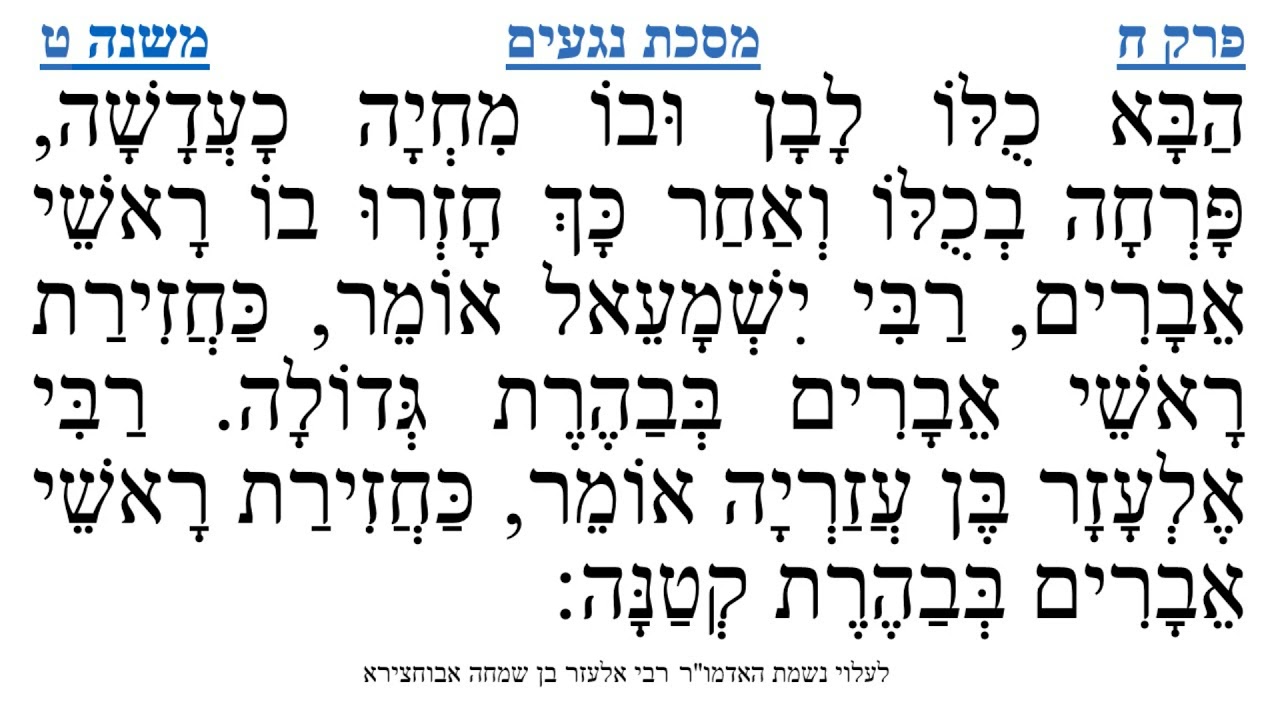 צפייה ישירה ב-YouTubeמסכת נגעים פרק ח משנה ט