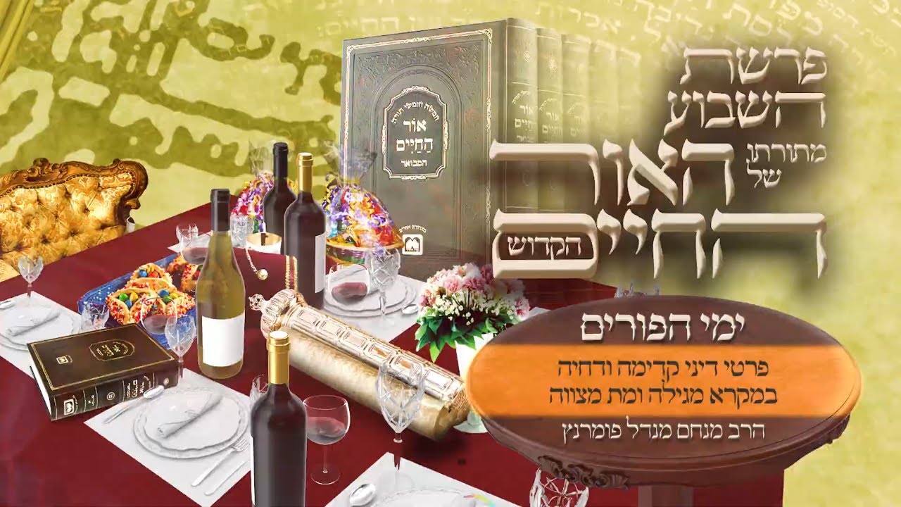 הרב מנחם מנדל פומרנץ | אור החיים הקדוש - ימי הפורים • פרטי דיני קדימה ודחייה במקרא מגילה ומת מצווה •