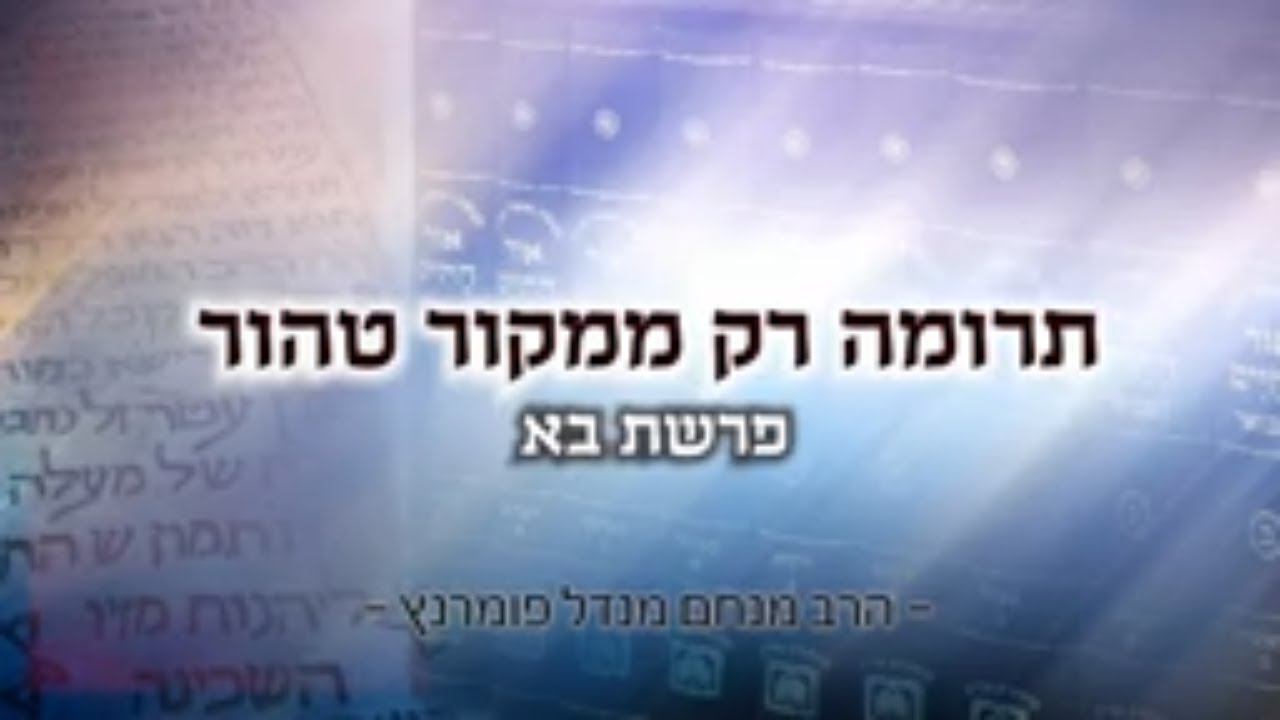 • תרומה רק ממקור טהור • הרב מנחם מנדל פומרנץ מסר אור החיים - פרשת בא תשפ"א