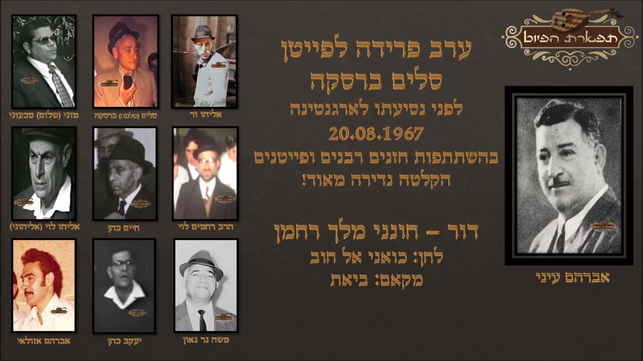 צפייה ישירה ב-YouTubeדור חונני מלך רחמן הפייטן אברהם עיני עם גדולי החזנים ערב פרידה לפייטן סלים ברסקה 20.08.1967 ווקאלי