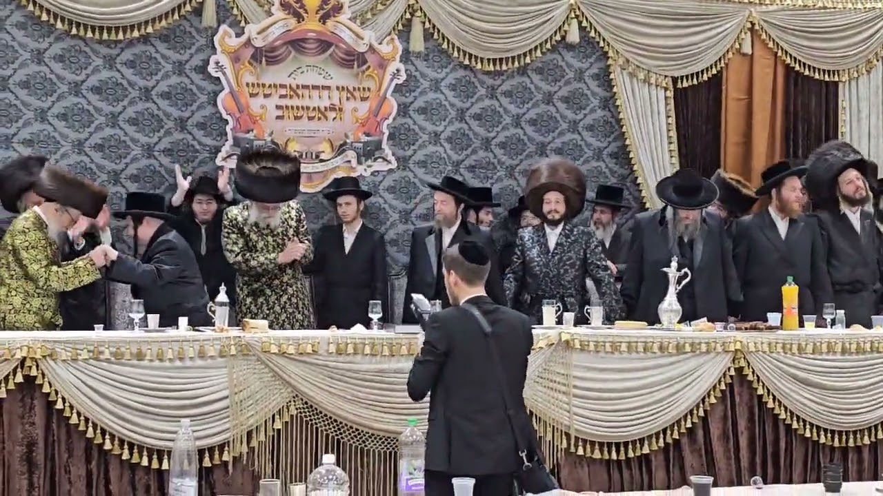 מרן האדמו״ר מויז׳ניץ בסעודת הודאה ביום הצלה ז' אדר