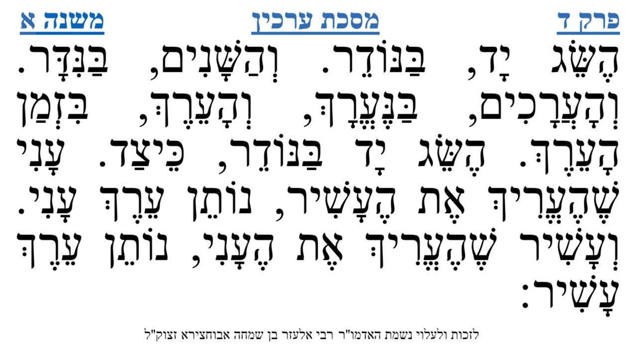 צפייה ישירה ב-YouTubeמסכת ערכין פרק ד משנה א