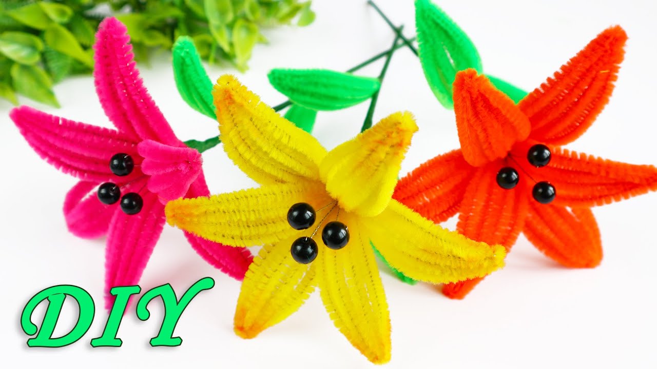 Beautiful fluffy lily flowers do it yourself. I use chenille sticks. Rose of Chenille Stems 👉 https://youtu.be/stG5e10VStA 👉 HandiCraft-SHOP: https://t.me/handicraft_shops #flowers #chenillestems #diycrafts