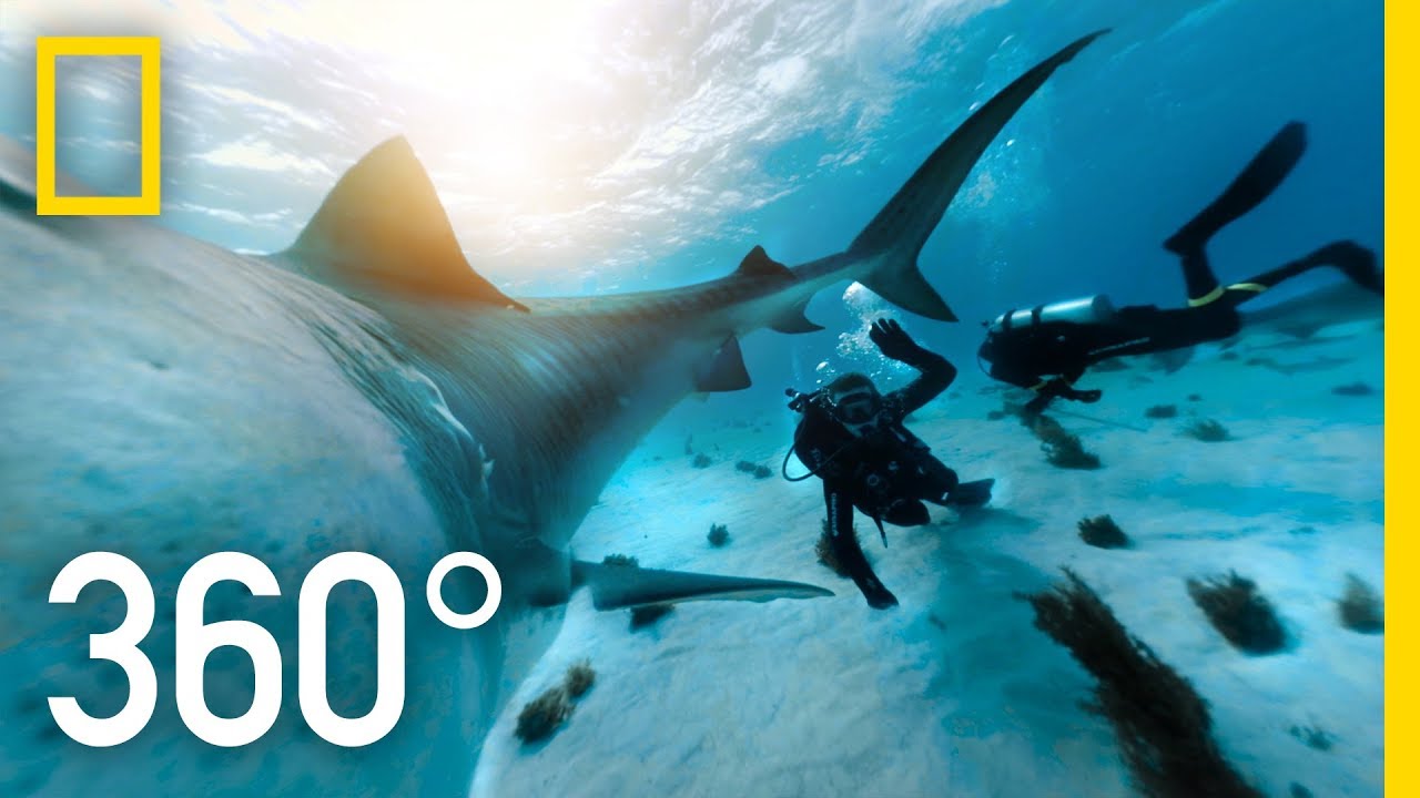 Come face to face with massive tiger sharks as you plunge into the crystal clear waters of the Bahamas. Able to sense electromagnetic fields, these apex predators become intently curious about our 360° camera. ➡ Subscribe: https://on.natgeo.com/41A7tf0 ➡ Get More Sharkfest: https://on.natgeo.com/2kISTAt #NatGeoWILD #Sharks #360Video About Sharkfest: Put on your wetsuit to swim with the sharpest of the sea. This is the one-stop-show-shop for all things shark. No fuss, no muss, just killer episodes. Get More National Geographic Wild: Official Site: http://bit.ly/MoreNatGeo Facebook: http://bit.ly/NGWFacebook Twitter: http://bit.ly/NGWTwitter Instagram: http://bit.ly/NGWInstagram Learn more about Tiger Shark: https://on.natgeo.com/2Yipdg2 Produced by BLACK DOT FILMS VR for National Geographic Partners. © 2017 National Geographic Partners, LLC. All Rights Reserved. About National Geographic Animals: National Geographic Animals brings you closer to the wild than ever before. Take a journey through the animal kingdom to discover fierce predators, surprising behaviors, adorable babies, and more through our fascinating wildlife documentaries, series, and specials. 360° Tiger Shark Encounter | SharkFest https://youtu.be/ Nat Geo Wild https://www.youtube.com/user/NatGeoWild