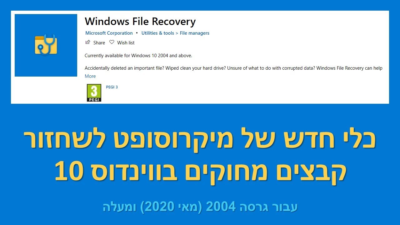 מחקתם קובץ במחשב והייתכם כל כך בטוחים שאתם לא צריכים אותו, כך שמחקתם אותו גם מסל המחזור? מיקרוסופט נלחצת לעזרתכם עם פקודה חדשה עבור גרסאות ווינדוס 10 גרסה 2004 (עדכון מאי 2020), איתו תוכלו לשחזר קבצים שמחקתם מהמחשב לגמרי. לקחתי את הפקודה החדשה הזו - winfr - לנסיעת מבחן. האם הכלי עומד בהבטחות שלו? חיגרו חגורה והצטרפו אלי למסע הקצר. --- עמוד הפרסום לגבי הכלי: https://support.microsoft.com/he-il/help/4538642/windows-10-restore-lost-files עמוד הורדה של הכלי: https://www.microsoft.com/en-us/p/windows-file-recovery/9n26s50ln705 👇🏼👇🏼👇🏼👇🏼👇🏼 רוצים לתמוך בערוץ? אם תרכשו מוצרים דרך הלינקים הללו, אקבל כמה גרושים כדי שאוכל להמשיך להשקיע בערוץ: Amazon | https://amzn.to/2HNmeoA Banggood (רצוי לשלם בפייפאל) | https://bit.ly/3jRjmFr Ali Express | https://bit.ly/3jXLTJq ☝🏼☝🏼☝🏼☝🏼☝🏼 🔸🔹🔸🔹🔸🔹🔸🔹🔸🔹 🗣️ מתקשים במשהו? צריכים תמיכה? מוזמנים לקבוצת הפייסבוק שלי: https://www.facebook.com/groups/mytechdesk 👀 מוזמנים לעקוב אחר עמוד הפייסבוק שלי: https://www.facebook.com/mytechdesk/ 🔸🔹🔸🔹🔸🔹🔸🔹🔸🔹 המחשב שלי: CPU: Ryzen 5 3600 https://amzn.to/2FA77xI Motherboard: ASUS B450M-Plus Gaming https://amzn.to/2Yc3yEt RAM: 4x8GB G.Skill DDR4 3200MHz https://amzn.to/2Yd3nsf SSD: Silicon Power NVME M.2 512GB https://amzn.to/3kPwlbz PSU: Antec VP-550P PSU https://amzn.to/3iPlWuy Case: Antec NX210 Case https://amzn.to/314jIl1 🔸🔹🔸🔹🔸🔹🔸🔹🔸🔹 #MyTechDESK
