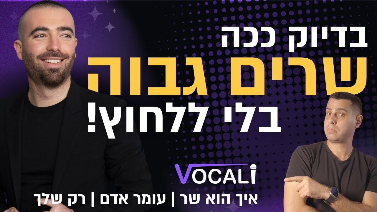 🎁 מיני קורס חינמי שילמד אתכם כיצד לחמם את הקול בכל שעה ביום ובמיוחד בבוקר ולפני הופעות, הקלטות, שיעורי פיתוח קול וכו׳. לחצו כאן לפרטים נוספים: https://bio.vocali.co.il ✨ אם אהבתם את הסרטון הזה , אל תשכחו ללחוץ לייק, להירשם לערוץ ולהפעיל את הפעמון כדי לקבל עדכון על כל סרטון חדש! ✨ 🎤 רוצים לשפר את יכולות השירה שלכם ואת הטכניקה הקולית שלכם? הצטרפו עכשיו לתוכנית האימון שלי – ״המיקסר״ – שמותאמת במיוחד לזמרים/ות שרוצים להתקדם ולשפר את הביצועים הקוליים שלהם! לחצו כאן לפרטים נוספים ולהרשמה: https://www.vocali.co.il/mixer-lp1 💬 אשמח לשמוע את דעתכם על הסרטון בתגובות! נתראה בסרטון הבא! ❤️