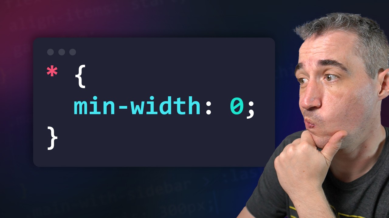 After Adam Wathan, and then @t3dotgg both posted and talked about the min-width: 0 thing, I've been getting a lot of questions about what I think about it. Rather than just share my own opinion on it (which we will get into), I saw it as a fun opportunity to dive into how Flexbox works and why this can sometimes solve some strange issues, but also the new issues it can cause as well. 🔗 Links ✅ Adam’s tweet: https://twitter.com/adamwathan/status/1734696245015494711 ✅ Theo’s video: [https://youtu.be/cH8VbLM1958](https://youtu.be/cH8VbLM1958?si=tk_Sr0taCBArEk4d) ✅ Theo’s tweet: https://twitter.com/t3dotgg/status/1753387896311259296 ✅ Looking to up your CSS game? I’ve got free and paid courses 👉 https://kevinpowell.co/courses?utm_campaign=general&utm_source=youtube&utm_medium=minwidthzero ⌚ Timestamps 00:00 - Introduction 01:48 - What started all this 02:48 - Why things don't always shrink 11:28 - Why this is a good behavior 19:17 - Being intentional with min-width: 0 #css -- Come hang out with other dev's in my Discord Community 💬 https://discord.gg/nTYCvrK Keep up to date with everything I'm up to ✉ https://www.kevinpowell.co/newsletter Come hang out with me live every Monday on Twitch! 📺 https://www.twitch.tv/kevinpowellcss --- Help support my channel 👨🎓 Get a course: https://www.kevinpowell.co/courses 👕 Buy a shirt: https://teespring.com/stores/making-the-internet-awesome 💖 Support me on Patreon: https://www.patreon.com/kevinpowell --- My editor: VS Code - https://code.visualstudio.com/ --- I'm on some other places on the internet too! If you'd like a behind the scenes and previews of what's coming up on my YouTube channel, make sure to follow me on Instagram and Twitter. Twitter: https://twitter.com/KevinJPowell Codepen: https://codepen.io/kevinpowell/ Github: https://github.com/kevin-powell --- And whatever you do, don't forget to keep on making your corner of the internet just a little bit more awesome!