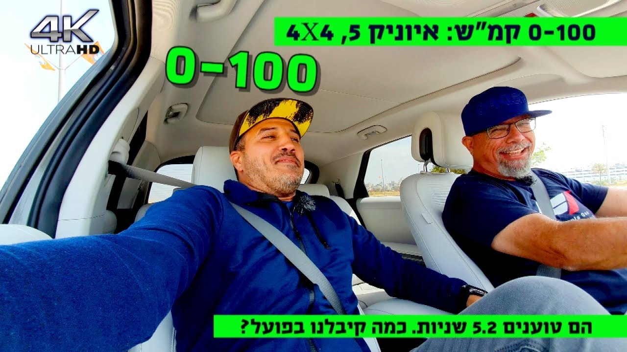 0-100: יונדאי איוניק 5, הנעה כפולה. הם טוענים 5.2 שניות - מבחן ראשון