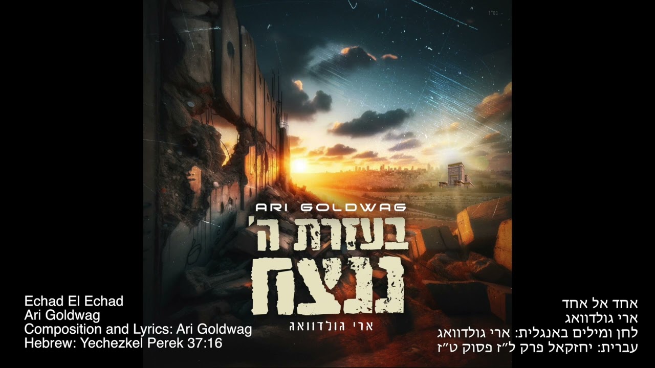 ARI GOLDWAG - Echad El Echad ארי גולדוואג - אחד אל אחד Song Composed, Produced and English Lyrics by Ari Goldwag Hebrew: Yechezkel 37:16 Guitars/Mandolin: Noam Burg Keys and programming: Ari Goldwag לחן הפקה ומילים באנגלית: ארי גולדוואג עברית: יחזקאל פרק ל״ז:ט״ז גיטרות: נועם בורג קלידים ותכנותים: ארי גולדוואג Lyrics: קח לך עץ אחד וכתוב עליו ליהודה ולקח עץ אחד וכתוב עליו ליוסף וקרב אותם אחד אל אחד לך לעץ אחד והיו לאחדים בידיך Translation: Take for yourself one piece of wood and write on it for Judah And take one piece of wood and write on it for Joseph And bring them one to the other for yourself for one piece of wood and they will become one in your hand Bridge lyrics: When we face away and stand so far apart We can not be who we really are It's only when we turn around Acknowledge there is common ground That's when We can start again I'll reach out now to you and you to me Side by side we'll find commonality The future holds so much light I know it's gonna be alright Let's stand Together hand in hand