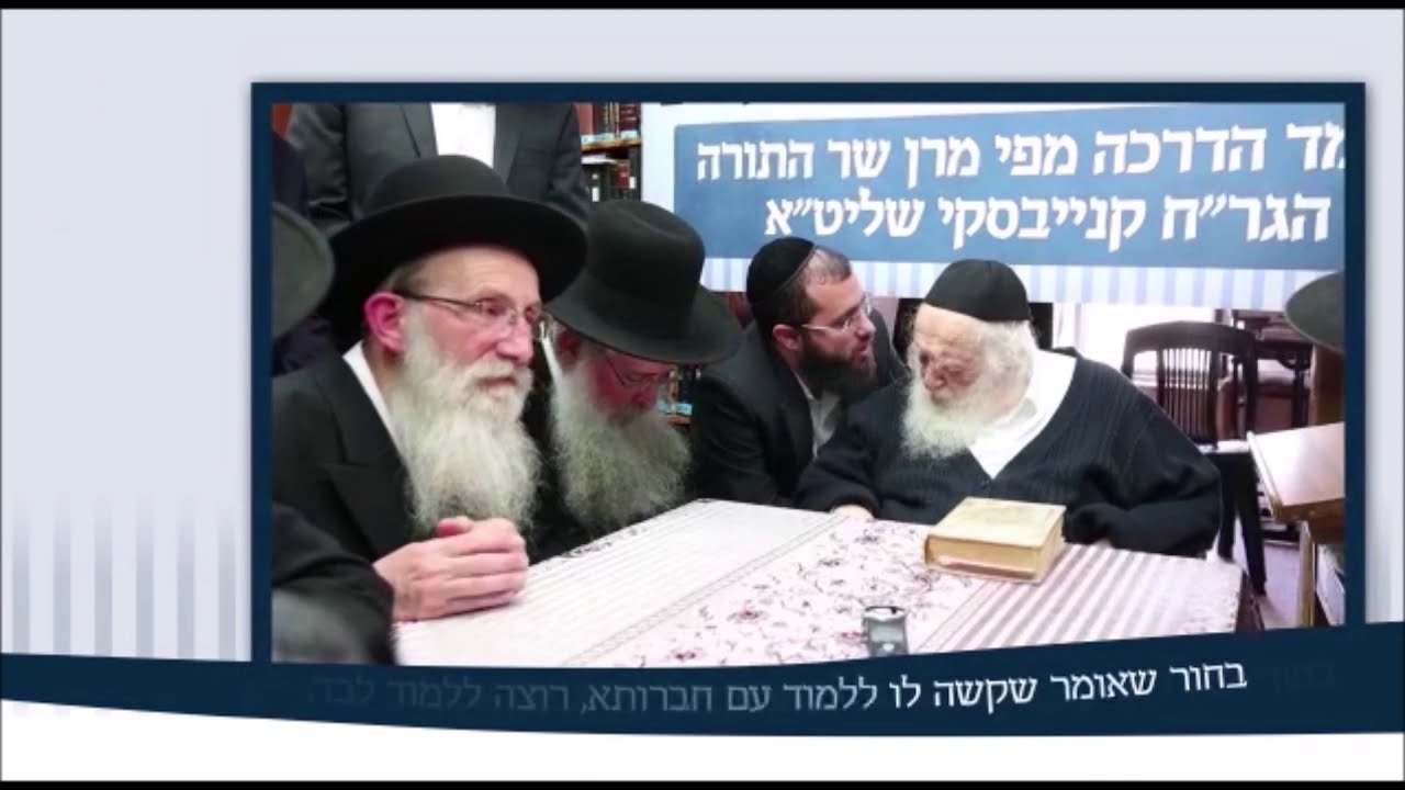 הרב חיים קנייבסקי נותן הדרכה לבחורים איך לגדול בתורה ויראת שמים ואיך בחורים צריכים לנהוג בישיבה צפו בשו”ת: “בחור לא חייב ללמוד עם חברותא חלש ממנו” שאלות שונות נשאל מרן הגר"ח קנייבסקי שליט"א בנוגע לבחורי ישיבות. השאלות והתשובות (חלקן מפתיעות) הוקרנו למאות התלמידים שהתכנסו ביום שישי. אתר לדעת מביא את השו"ת עם מרן. אהבתם את הסרטון - תעשו לייק לחץ על הרשמה למינוי כדי להתעדכן על סרטונים חדשים ומעניינים - ההרשמה בחינם תכתבו תגובה מה דעתכם על הסרטון. You liked the video - Like Click Subscribe to Subscribe to stay up to date on new and interesting videos - Free Registration Write a comment What you think of the video. למעלה מ – 600 תלמידים מסיימי כיתות ח’ בתלמודי התורה בב”ב השתתפו במעמד ‘צידה לדרך’ לקראת מעברם לישיבות לצעירים באולם האודיטוריום העירוני רמת אלחנן, בראשות הגר”ד כהן שליט”א, ראש ישיבת חברון וחבר מועצג”ת שנשא את המשא המרכזי. דברי ברכה נשא ראש העיר הרב אברהם רובינשטיין שדיבר על שלל היוזמות החינוכיות המתקיימות בפעילות עיריית ב״ב כיאה לעיר התורה והחסידות בשיאו של המעמד הוקרן שו”ת הדרכה מיוחד שהתקיים במעונו של מרן שר התורה הגר”ח קנייבסקי שליט”א, ושמובא כאן לפניכם. מנחה המעמד הביא מדברי ראש הישיבה הגרי”ג אידלשטיין שנשא דברים בפני חברי המשלחת מגדולי המחנכים.