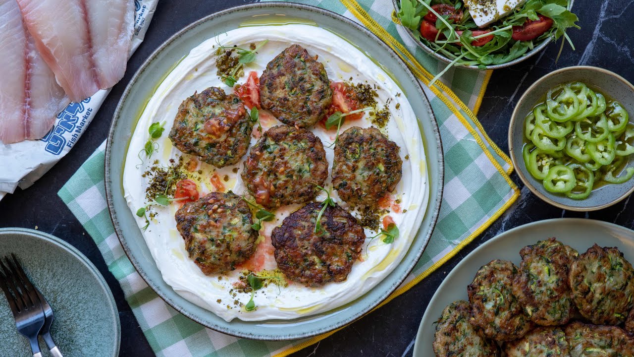 לביבות אמנון וזוקיני על לאבנה שמן זית וסחיטת עגבניה