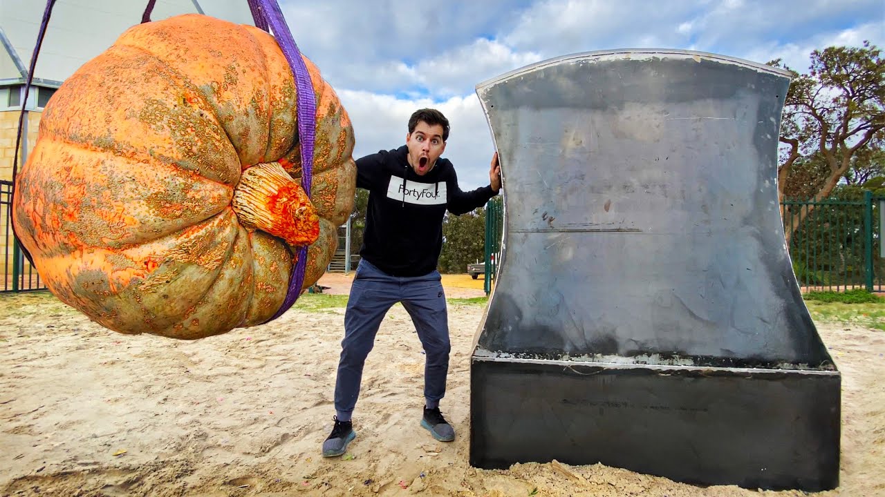 AUSTRALIA'S BIGGEST PUMPKIN Vs. GIANT AXE from 45m Tower!