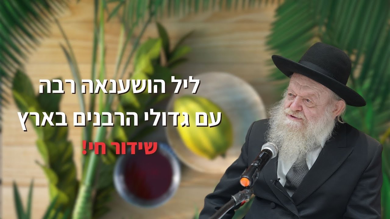 ליל הושענא רבה עם גדולי הרבנים בארץ - שידור חי! ⬇️ 21:00 - ניסים במלחמה - יספרו בעלי הנס 22:00 - הרב אליעזר ראוכברגר 22:15 - מרן הרשל"צ הרב הראשי לישראל הגאון רבי דוד יוסף 22:45 הגה"צ רבי "בנימין הצדיק" פינקל משגיח ישיבת מיר 23:00 מרן הרשל"צ הרב הראשי לישראל הגאון רבי יצחק יוסף 23:45 הגאון המקובל הגדול רבי יעקב עדס 24:25 הגאון רבי יוסף צ. בן פורת ראש הישיבה 02:00 הגאון רבי זמיר כהן ראש ישיבת "אבני נזר" 02:30 הרה"צ רבי אברהם אלימלך בידרמן 03:15 הפוסק הגדול הגאון רבי עמרם פריד