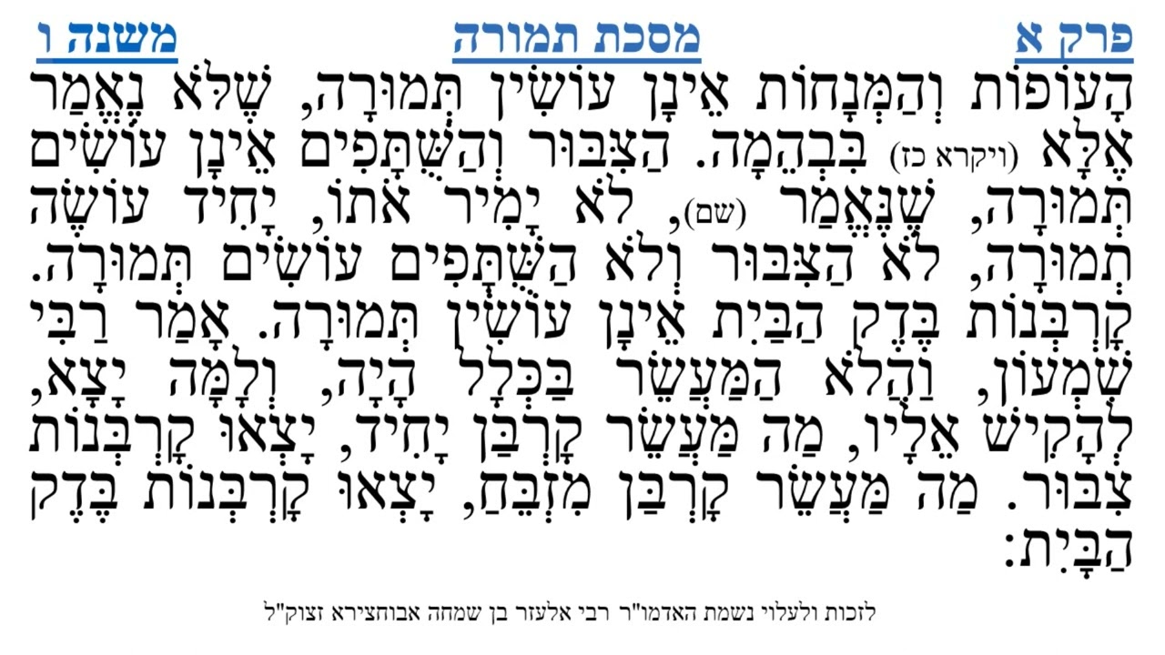 צפייה ישירה ב-YouTubeמסכת תמורה פרק א משנה ו