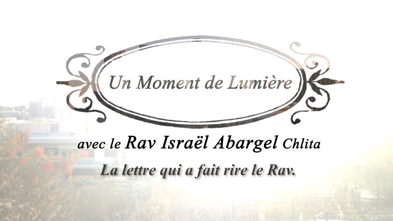 Un Moment de Lumière - Rav Israël Abargel Chlita - La lettre qui a fait rire le Rav. Participez à la diffusion de la Torah! Pour dédicacer et vous procurer les livres du Rav composez le: +972-8-97-66-979 , rebbiisrael@hameirl.com Pour contacter l'association "Haméir Laarets" dirigée par le Rav Israël Abargel Chlita: +972-8-97-66-979 , rebbiisrael@hameirl.com