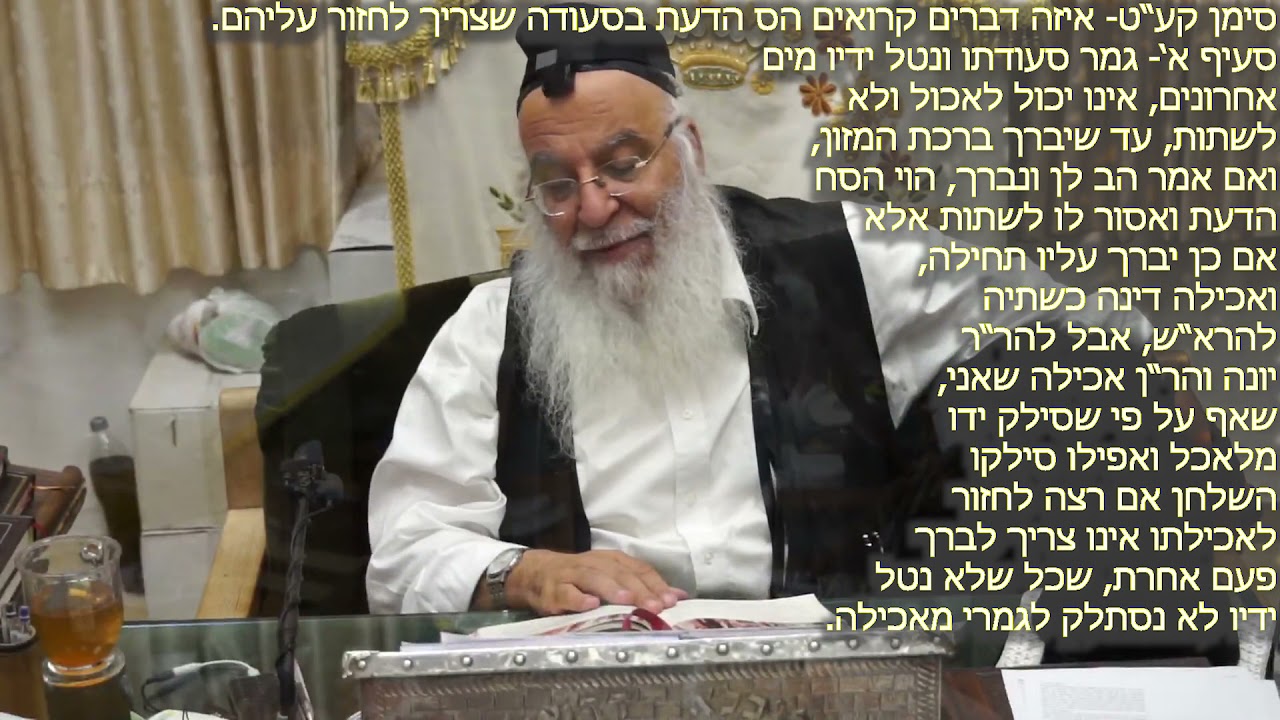 297הלכה יומית סימן קעט-איזה דברים קרוים הסח הדעת בסעודה שצריך לחזור ולברך סעיף א-ג הראב בניהו שמואלי