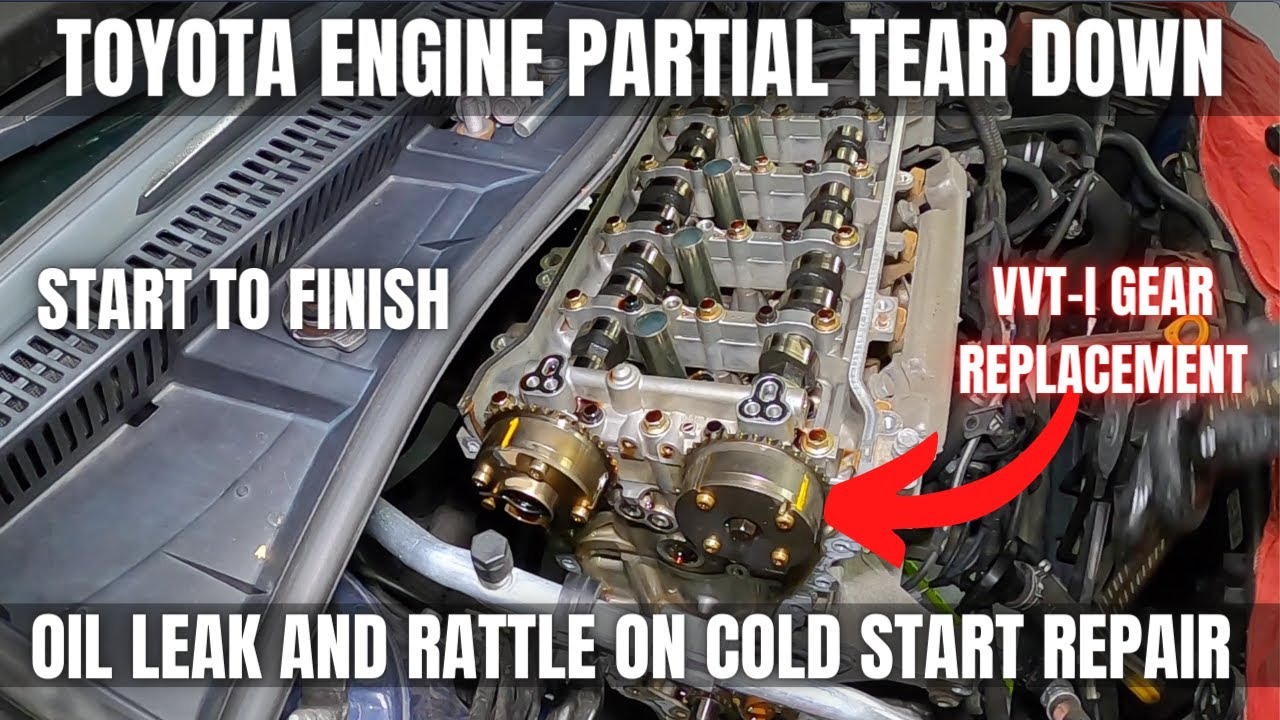 Toyota Engine Partial Tear Down for Leak and Rattle on Cold Start Repair