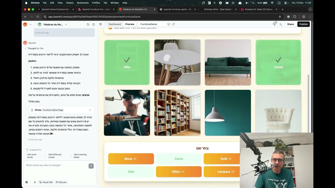 משחק לימוד ספרדית מהוידאו: https://casa-vocabulario-sonoro.lovable.app/ רשימת כלים לבניית אפליקציות ללא קוד: - Build Stitch and Unicorn multiplication practice game on Google AI Studio - Build kahoot style quiz game on lovable - Build a twitter clone in copilot - List of builders - https://lovable.dev/ - https://base44.com/ - https://bolt.new/ - https://blink.new/ - https://v0.dev/ - https://www.rocket.new - https://www.vibecodeapp.com - https://rosebud.ai/ - https://dazl.dev/ - Google Opal קבוצת לימוד AI: https://www.tocode.co.il/talking_ai