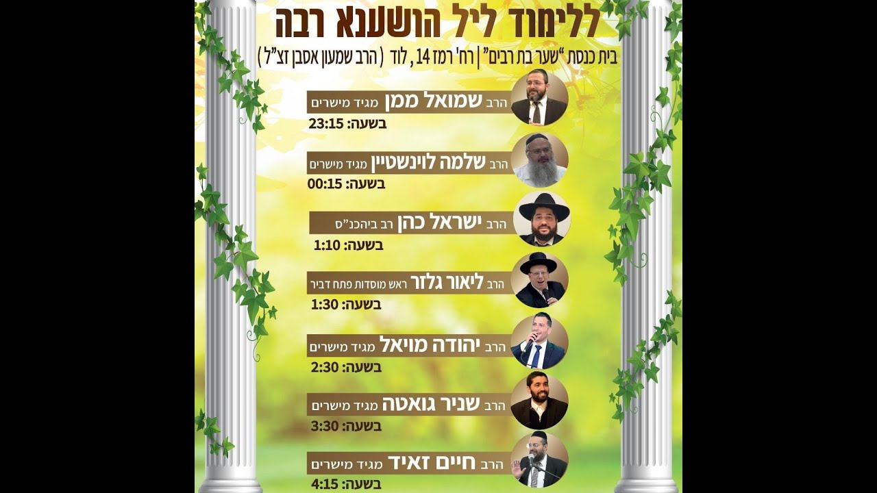 צפייה ישירה ב-YouTubeליל הושענא רבה |🔴שידור חי מלוד (הרב שניר, הרב זאיד, הרב גלזר, ועוד...)