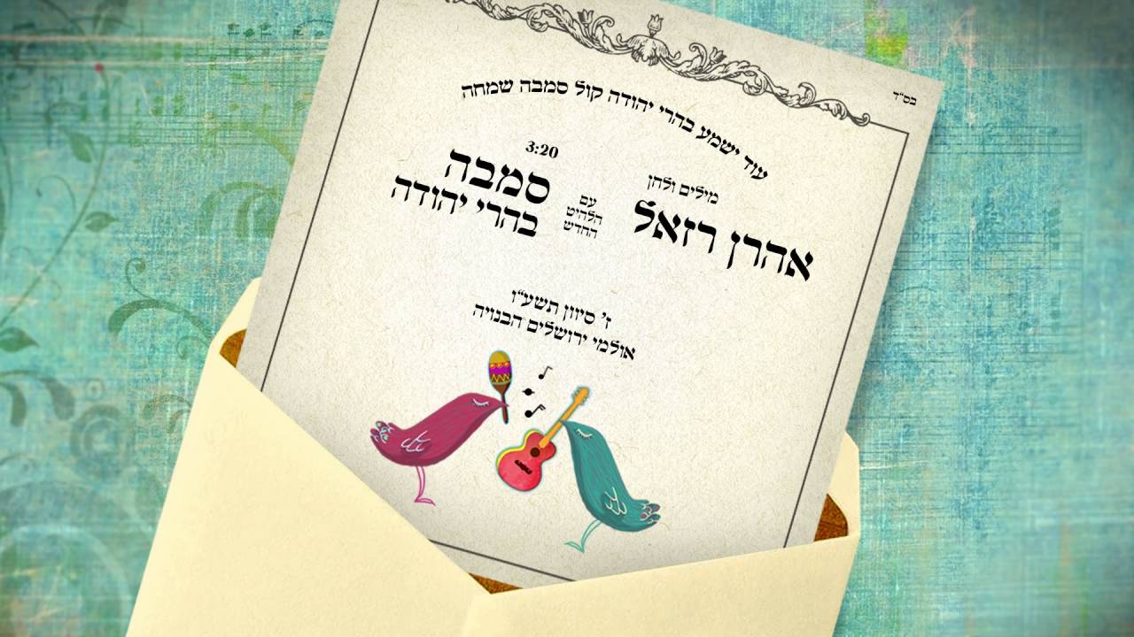 סמבה בהרי יהודה // אהרן רזאל (2016) בקרו גם בדף הפייסבוק של אהרן: http://bit.ly/AaronFBpage מילים: זה לא מקצב של חתונה לא הרמוניה של חופה אבל חרשנו כבר ת'אסטה בהרקדה רוב האורחים והדודים ומי אשר ירים גבה כבר הכניס לתוך תיבה את המעטפה וכל המלצרים אזנם במילא כבר עייפה וגם המנהל של האולם כבר לא יעז לומר מילה חשבנו לשמח החתן עם הכלה שהתעייפו מרוק אנד רול ודיסקו ולשנות האווירה לכן כתבתי בוסה נובה לקול חתן קול כלה ישמע עוד בהרי יהודה קול סמבה שמחה בואי כלה, בואי כלה, בואי כלה בואי כלה בואו ונשמח נרקוד, נבנה אחת מחורבותיה של ירושלים הבנויה אפשר לרקוד, זה מעייף להתסכל על המתופף להסתובב לפגוש מכר קצת לרחף אפשר לצאת לנשום אויר או לברר על המחיר להתיישב סתם ככה שם, ליד הקיר באמת איני יודע איך נקלעתי כלל לכאן אין לי שום מושג מי הכלה גם לא מזהה את החתן אשם הוא המקצב הזה שכל-כך מהפנט רגליי הם שהתחילו מרקדות אני ני נמשכתי כמו מגנט לכן כתבתי בוסה נוסה... קרדיטים: מילים ולחן: אהרן רזאל עיבוד והפקה מוסיקלית: עדי רנרט קלידים: עדי רנרט ואהרן רזאל תופים: אלון הלל בס: אלון נדל כלי הקשה : ז'וקה פרפיניאן גיטרה: עמוס הדני כלי נשיפה: סלעית להב ורשאי הקלטות ומיקסים: רונן רוט-סוניק יארד תל אביב מאי 2016, אייר תשע"ו בס, תופים וקלידים הולקטו באולפני פלוטו: ברק יחזקאל, טכנאי הקלטה מאסטרינג: לורסון מאסטרינג ארה"ב יחסי ציבור: קובי סלע 054-4402805 גרפיקה: מירב שאול ברלב בוקינג: אריה הנץ הפקות 052-3928885 ניהול מדיה ושיווק דיגיטלי: IDO'S - עידו שטיינר: 050-8851136 האתר של אהרן רזאל: http://aharonrazel.co.il