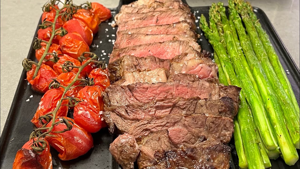 איך להכין סטייק אנטריקוט 500 גרם אספרגוס ושרי צלויות בנינג׳ה גריל