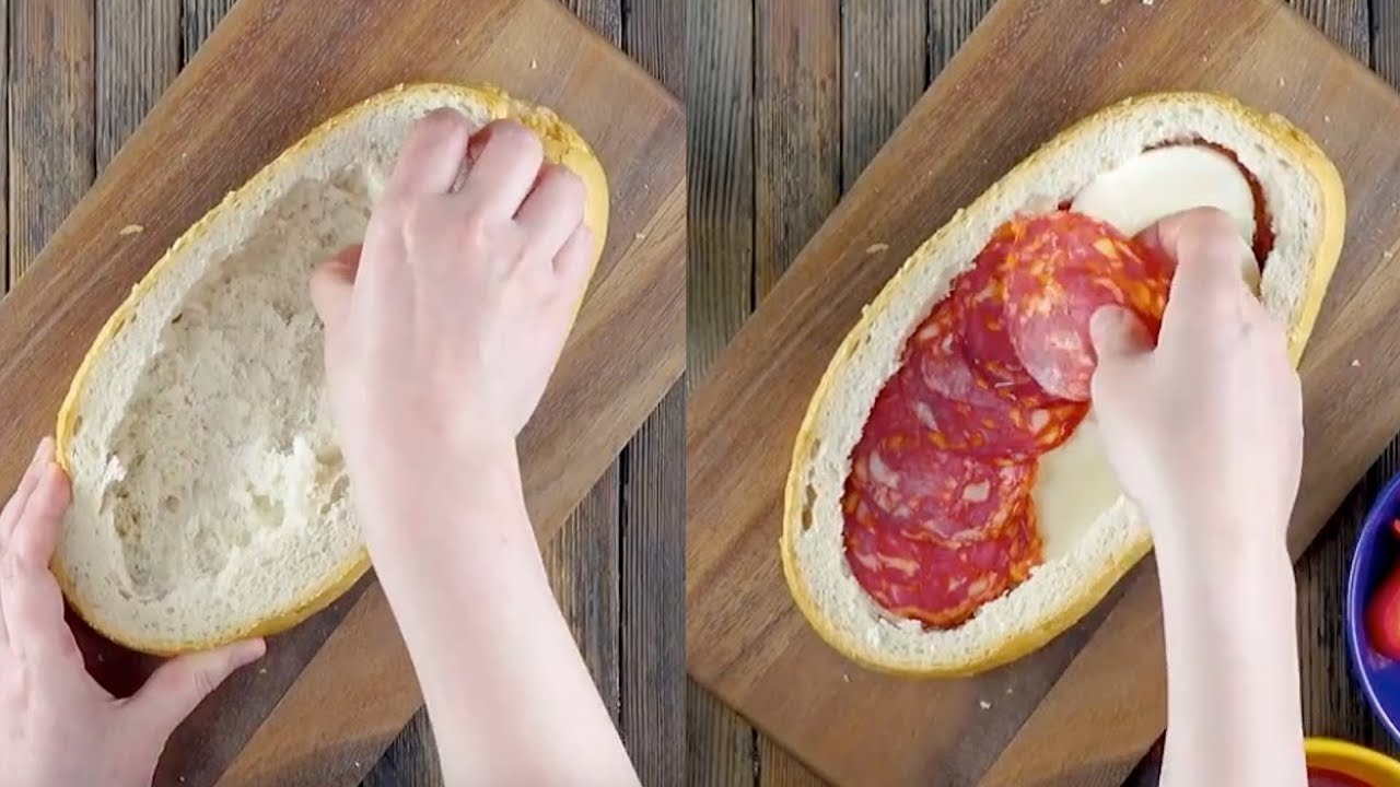 Deep-Dish Pizza Bread Bowl ⬇️ SCRUMDIDDLYUMPTIOUS RECIPE BELOW ⬇️ Who doesn't love homemade pizza fresh from the oven? But what if some friends randomly stop by and you're out of ingredients to make your own pizza dough? Chances are, you have a fresh loaf of Italian bread on hand, in which case — problem solved! Once your guests try this sophisticated version of pizza, they'll be requesting it all the time and it will soon become a culinary staple at all your future get-togethers. 📌 FULL RECIPE: https://www.scrumdiddlyumptious.com/pizza-bread-bowl/ ➡️ Thanks for watching and don't forget to subscribe for a first-hand look at all our best recipes and cooking hacks: https://www.youtube.com/scrumdiddlyumptious?sub_confirmation=1 ****************************************************** Yield: 1 Prep Time: 10 minutes Cooking Time: 30 minutes You'll Need: 1 loaf of Italian bread 1 cup pizza sauce 1 fresh mozzarella ball, sliced 6 oz sliced pepperoni ½ onion, sliced fresh basil leaves 6 oz kielbasa sausage, divided 1 red bell pepper, cut into strips 1½ cups shredded mozzarella, divided Here's How: 1. Cut the top of the bread loaf off and set it aside for later. Hollow out the inside of the bread loaf to make a bread bowl. 2. Spread ⅔ of the pizza sauce over the bottom of the bread bowl and top with the mozzarella slices. 3. Layer the pepperoni slices on top of the mozzarella. 4. Spread the onion strips over the pepperoni, followed by layers of basil leaves, chopped kielbasa, and red bell pepper strips. 5. Pour the remaining pizza sauce over the ingredients, sprinkle 1 cup of shredded mozzarella on top, and place the bread lid back on the bread bowl. 6. Wrap the stuffed bread bowl in aluminum foil and weigh it down with a heavy wooden chopping board for 30 minutes. 7. Remove the aluminum foil and place the stuffed bread bowl on a baking tray lined with parchment paper. Sprinkle ½ cup of shredded mozzarella over the bread lid and garnish with a few slices of kielbasa. Transfer the baking tray to a preheated oven and cook at 350°F for 30 minutes. This pizza bread bowl is the best thing since sliced bread – be careful not to burn your fingers in your eagerness to grab a cheesy slice! ****************************************************** Do you want to see more content like this? Scrumdiddlyumptious brings you unique recipes & cooking hacks every day, so be sure to subscribe, like, and follow us for a first-hand look at new videos that you can share with your family & friends! 💚 YouTube: https://www.youtube.com/scrumdiddlyumptious 💚 Facebook: https://www.facebook.com/scrumdiddlyumptiouscom 💚 Instagram: https://www.instagram.com/scrumdiddlyumptious_recipes 💚 Pinterest: https://www.pinterest.com/scrumdiddlyumptious 💚 Website: https://www.scrumdiddlyumptious.com ******************************************************