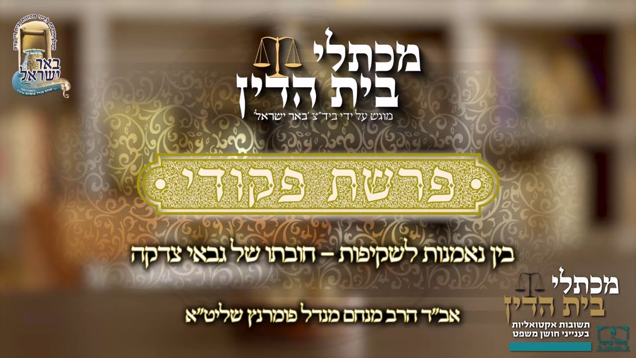 הרב מנחם מנדל פומרנץ | מכתלי בית הדין - פרשת פקודי • בין נאמנות לשקיפות - חובתו של גבאי צדקה •