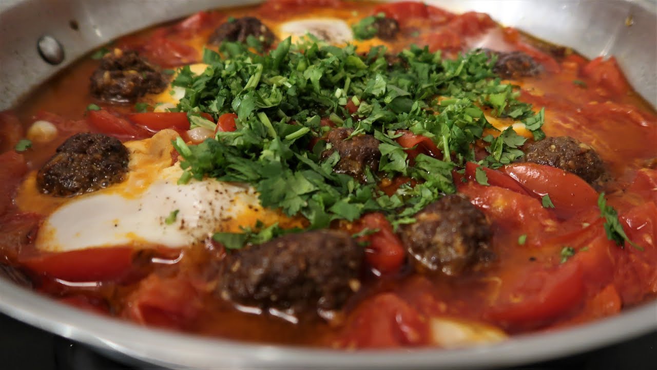 שקשוקה עם כדורי בשר. מתכון של מקס מלכיאל. شکشوکة مع لحم مفروم Shakshuka