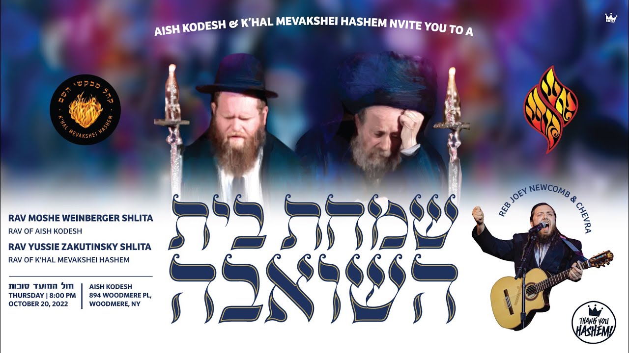 AISH KODESH & K’HAL MEVAKSHEI HASHEM INVITE YOU TO A שמחת בית השואבה חול המועד סוכות תשפ״ג Simchas Beis HaShoeivah Chol Hamoed Sukkos 2022 Rav Moshe Weinberger Shlita Rav of Aish Kodesh Rav Yussie Zakutinsky Shlita Rav of K'hal Mevakshei Hashem REB JOEY NEWCOMB & CHEVRA Thursday October 13, 2022 DIVREI TORAH // MUSIC // Thank You Hashem https://tyhnation.com/ #SimchasBaisHashoeva #ThankYouHashem #JoeyNewcomb