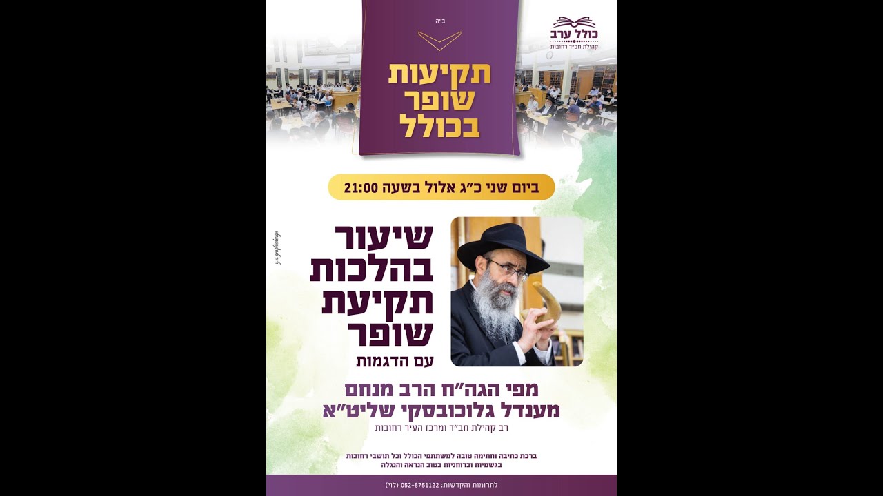צפייה ישירה ב-YouTubeהלכות תקיעת שופר - הרב מנחם מענדל גלוכובסקי שליט"א