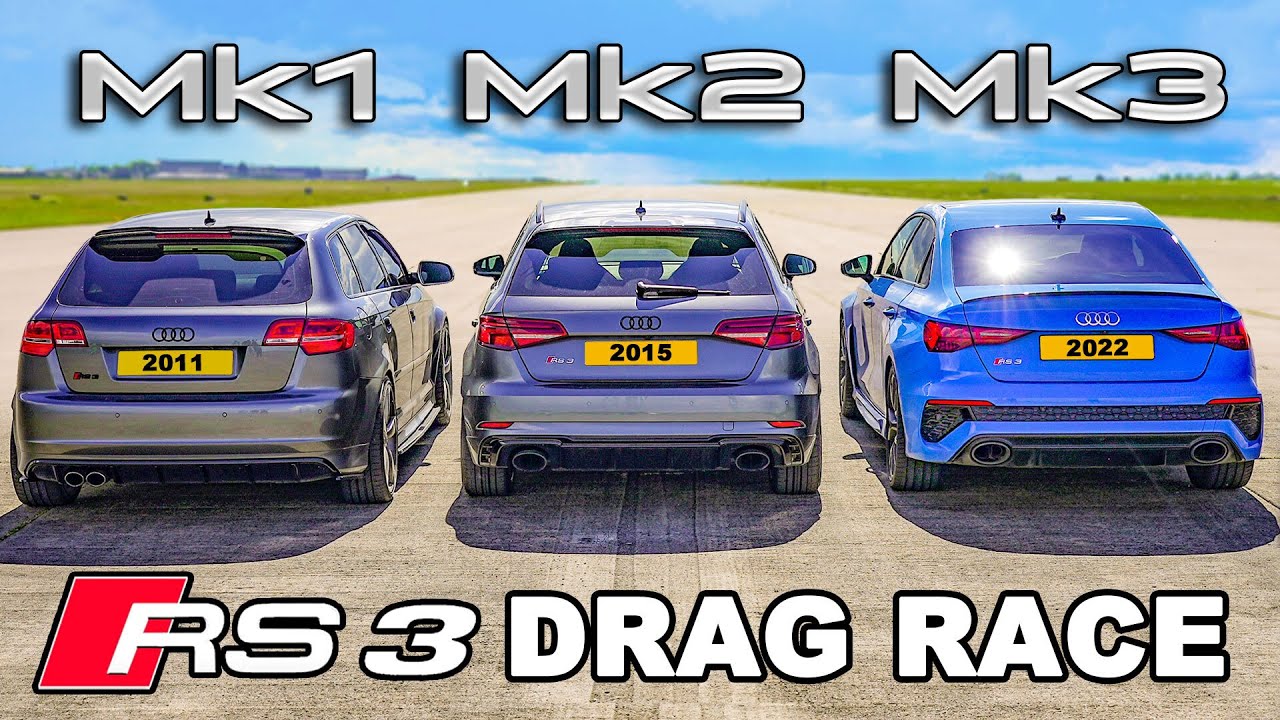 Follow Racing Driver Sam on Instagram: https://www.instagram.com/sammaherloughnan/ Follow the Mk1 owner: https://www.instagram.com/rs3_8pcam/ Follow the Mk2 owner: https://www.instagram.com/rs3_apollo We’ve got our hands on all three editions of the Audi RS3, and we’re about to find out just how different they all are! For starters, let’s check out the stats. The Mk1 RS3 is powered by a 2.5-litre turbocharged 5-cylinder that can put down 340hp and 480Nm of torque. It tips the scales at 1,575kg, and if you’re looking to pick one up in 2022 it’ll cost you about £25,000. As for the Mk2, it’s also powered by a 2.5-litre turbocharged 5-cylinder, but it’s well up on power, producing 400hp and 480Nm of torque. It’s lighter than the Mk1, at 1,510kg, and the price of one today is about £35,000. Then finally we have the new Mk3. It’s powered by a (you guessed it…) 2.5-litre turbocharged 5-cylinder, putting down 400hp and 500Nm. It weighs the same as Mk1, at 1,575kg, and it currently costs £56,000. So what do you think - will the Mk3 run away with it? Or will the lighter Mk2 snatch the win? There’s only one way to find out… LET’S RACE! Mega Audi RS drag race: https://bit.ly/Audi-RS-DRAG-RACE