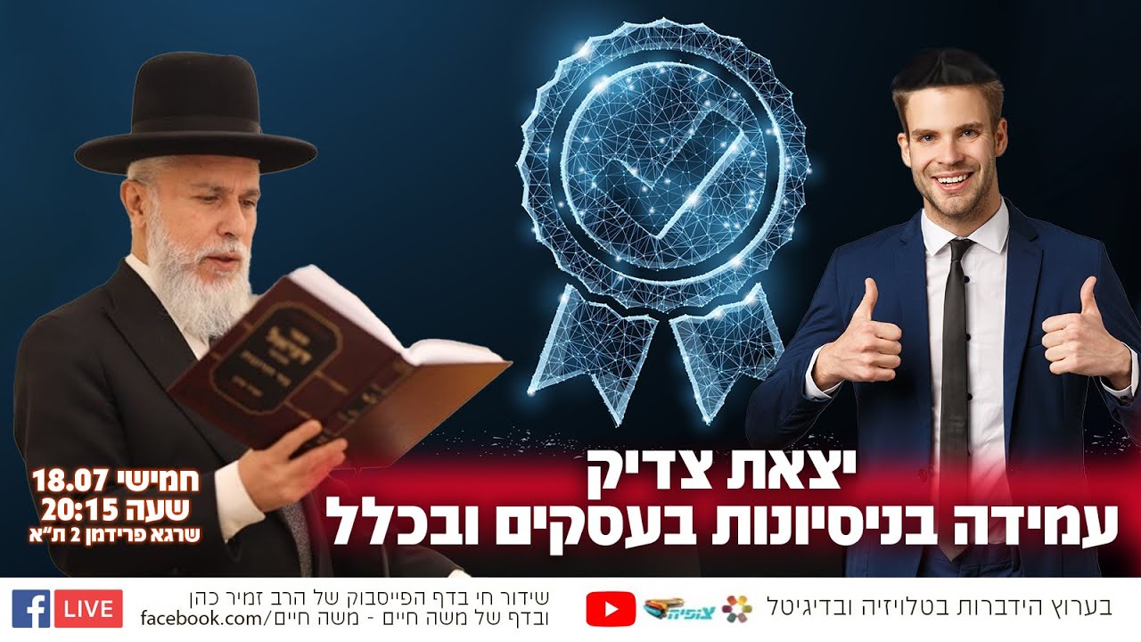 צפייה ישירה ב-YouTubeיצאת צדיק - עמידה בניסיונות בעסקים ובכלל | הרב זמיר כהן בשידור חי
