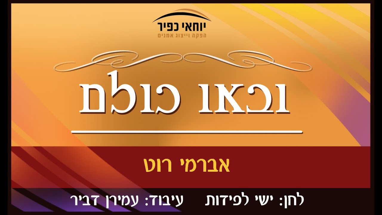 לקראת ובאוירת חג השבועות עוד יצירת איכות מבית יוחאי כפיר הפקות. באו כולם בברית יחד, התקבצו, בישלו והפיקו את הסינגל החדש "ובאו כולם" ללחן של ישי לפידות, כאשר על העיבוד וההפקה המוזיקאלית אחראים עמירן דביר ועדי נתנאלי, והביצוע של הזמר והחזן העולמי אברימי רוט. מילים: ובאו כולם בברית יחד נעשה ונשמע אמרו כאחד ופתחו וענו השם אחד ברוך הנותן ליעף כח קרדיטים: לחן: ישי לפידות עיבוד: עמירן דביר הפקה מוזיקאלית: עמירן דביר ועדי נתנאלי הפקה וייצוג: יוחאי כפיר הפקות גרפיקה: גלעד שנקר יחסי ציבור: מדיה פרו pr@mediapro.co.il אברימי בפייסבוק: https://Facebook.com/AvremiR אברימי באינסטגרם: https://instagram.com/avremiroth אברימי בטוויטר: https://Twitter.com/avremi_roth אברימי ביוטיוב: https://YouTube.com/ybaudio להזמנת אירועים ומופעים: נייד: 054-8087150 דוא"ל: Avremiroth@gmail.com