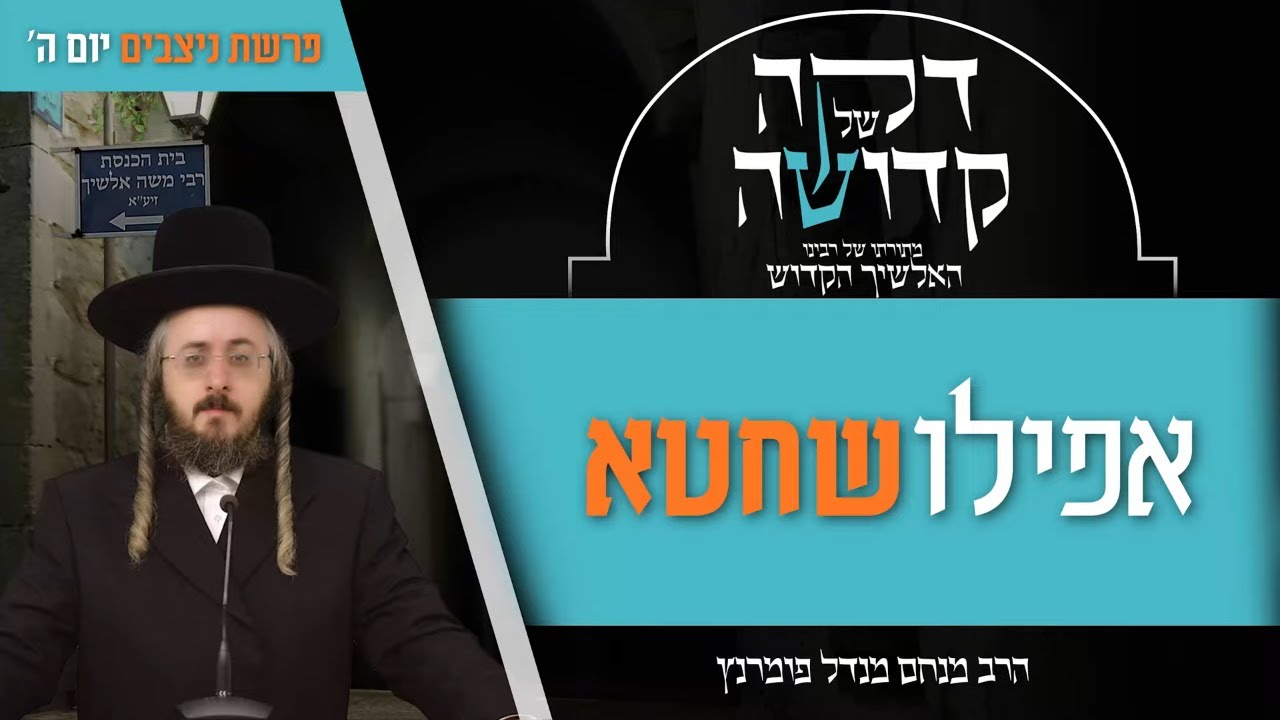 הרב מנחם מנדל פומרנץ | דקה מתורתו של רבינו האלשיך הקדוש - יום ה' פרשת ניצבים • אפילו שחטא •