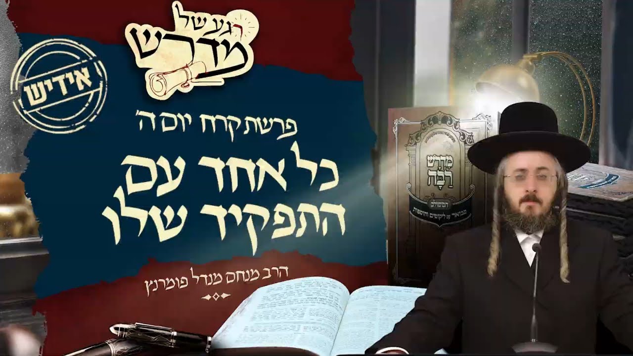 הרב מנחם מנדל פומרנץ | רגע של מדרש -אידיש- יום ה' פרשת קרח • כל אחד עם התפקיד שלו •